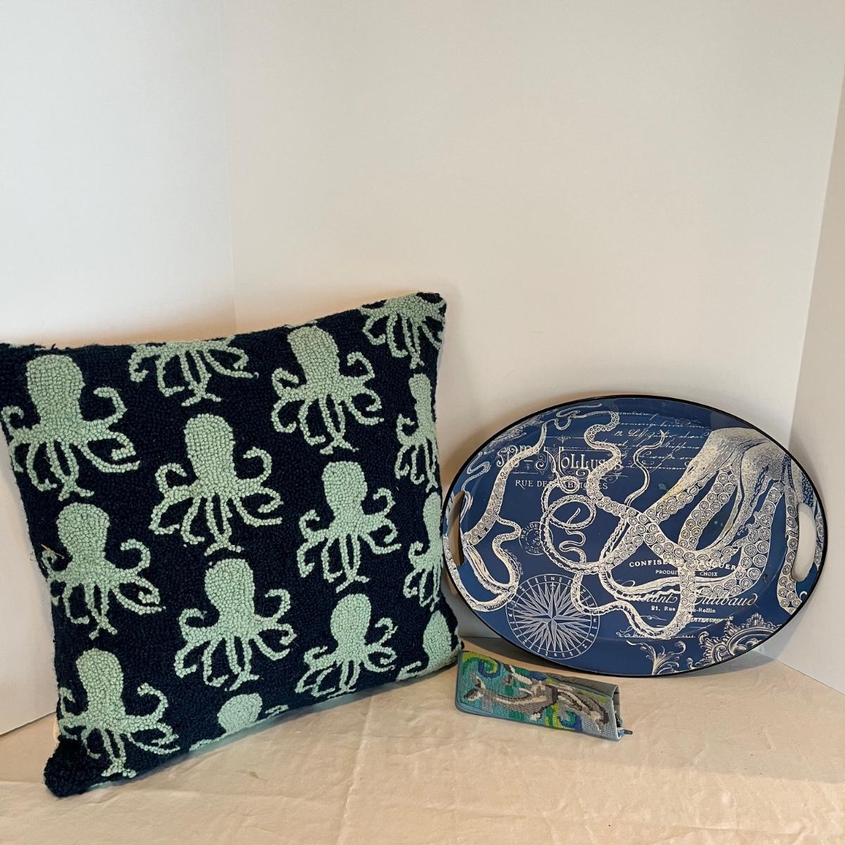 Octopus Theme Pillow w/Tray & Dolphin Beaded Glasses Case