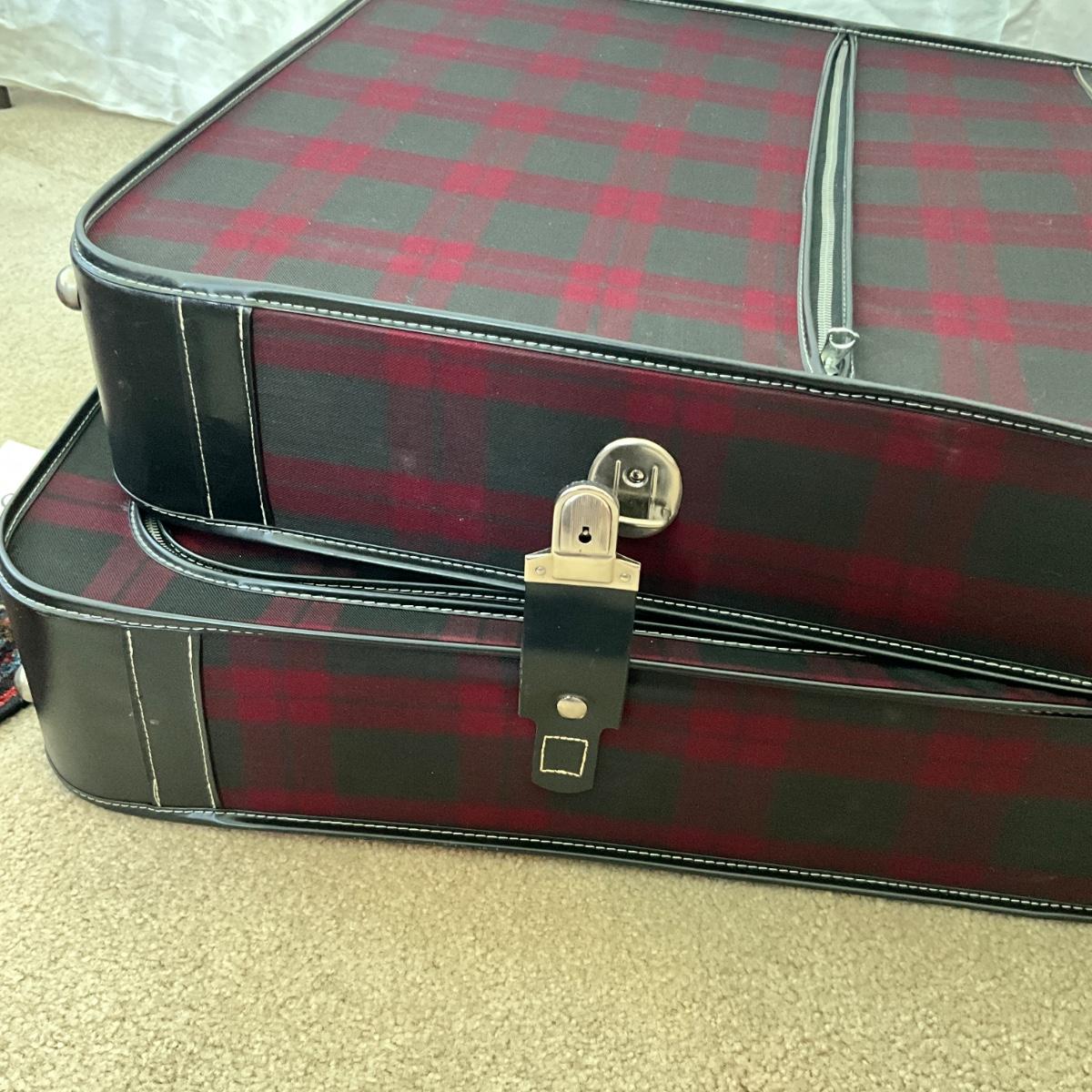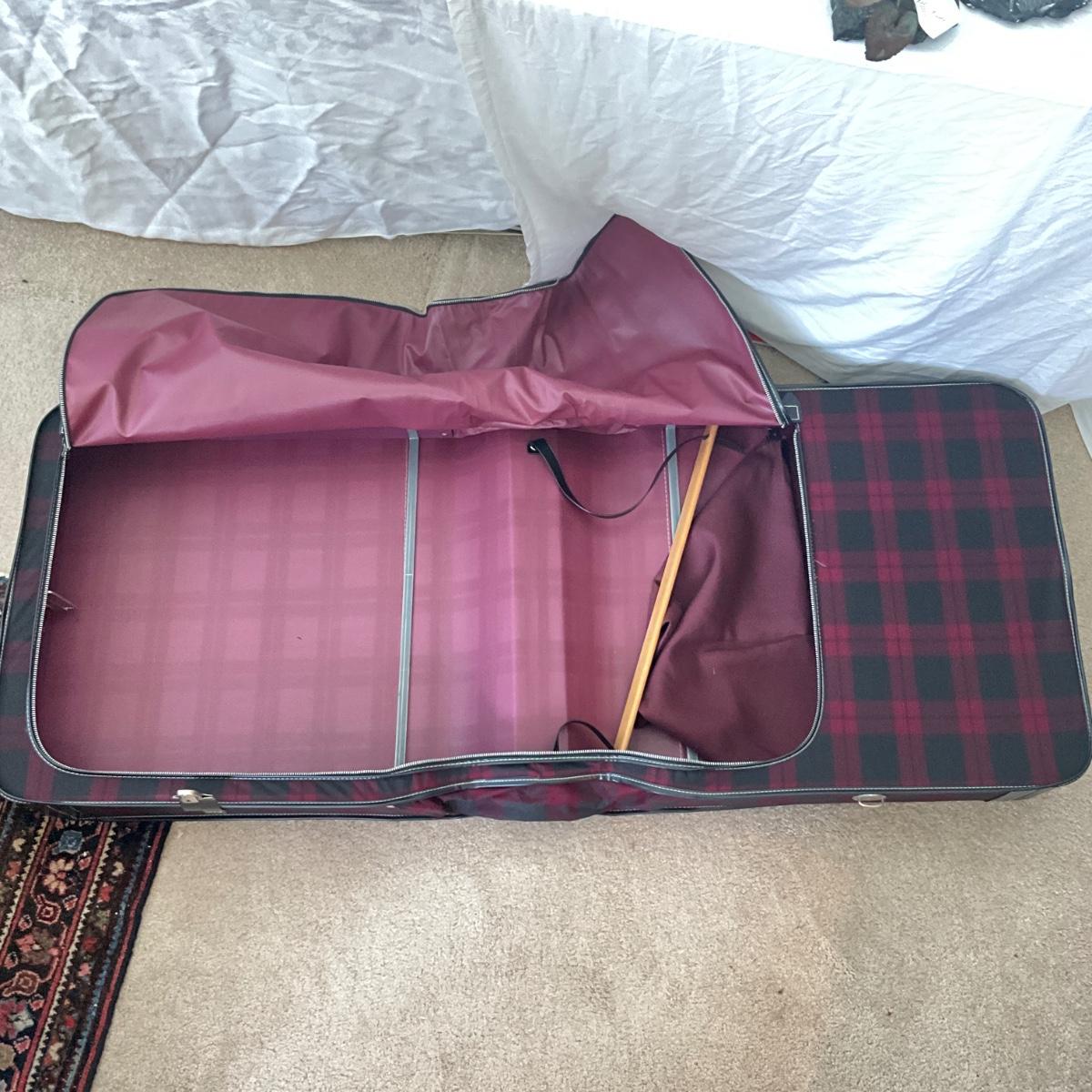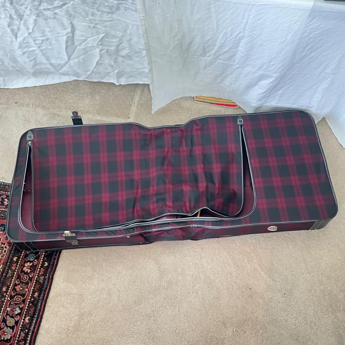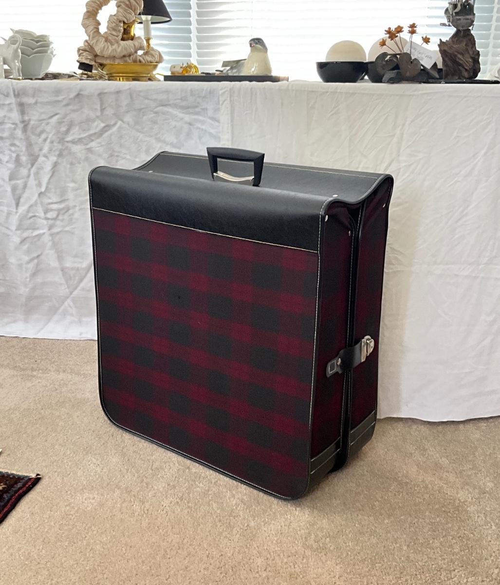 878 (Like New) Vintage Red Plaid Grasshopper Leather Suitcase