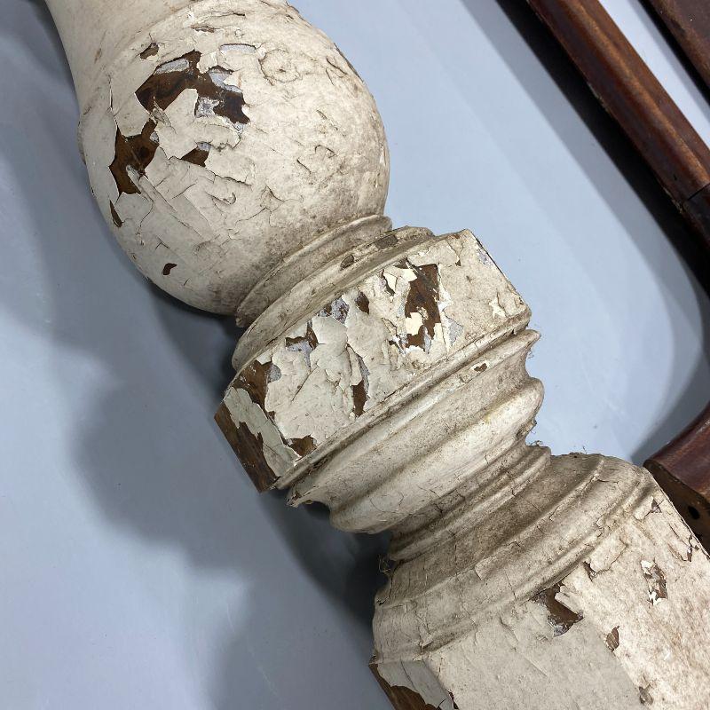 This mis-matched looking bunch is actually from the same staircase! On the reverse of the banister you can see the paint residue from a sloppy paint job. I can only imagine how stunning this set of stairs was! Measurements: 31+ Spindles of varying lengths / Newel 44" total length, 7.5" wide / Full length of long portion, 13 feet - there is a 3 foot section that can be detached / Small J-shaped section measures 41" long. ::::All Measurements are approximate and to the best of our knowledge. If you are interested in shipping of an item, we can add that service to your invoice after the close of the auction. Do keep in mind that any oversized items may need to be shipped via freight from Appleton, Wisconsin. We will work with you to get the best price and a $5 per item handling fee will be assessed in addition to the freight fee from the courier. Please contact the auctioneer through this website, by phone or email with any questions.