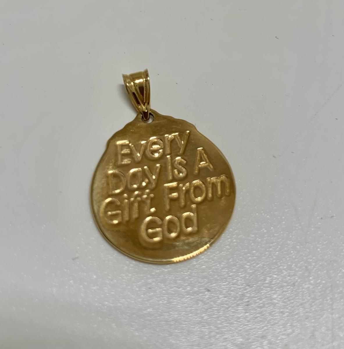 88: 14K Michael Anthony “Every day is a gift from God“ Pendant New with box