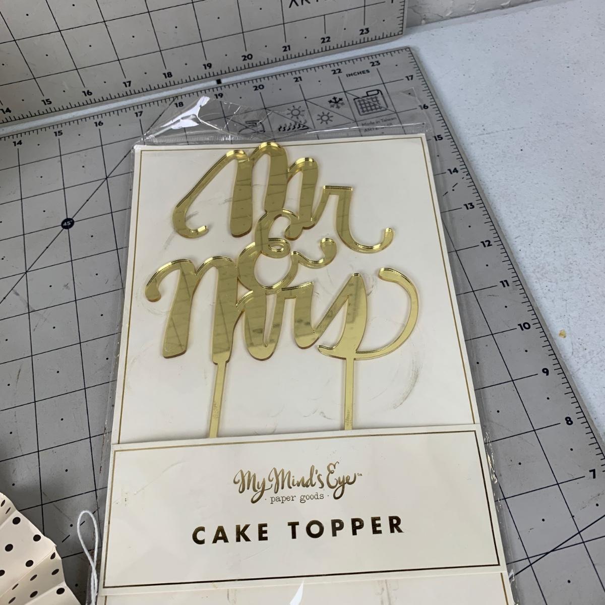 #88 Mrs. & Mr. Cake Topper, Paper Fan and Balloon Weights