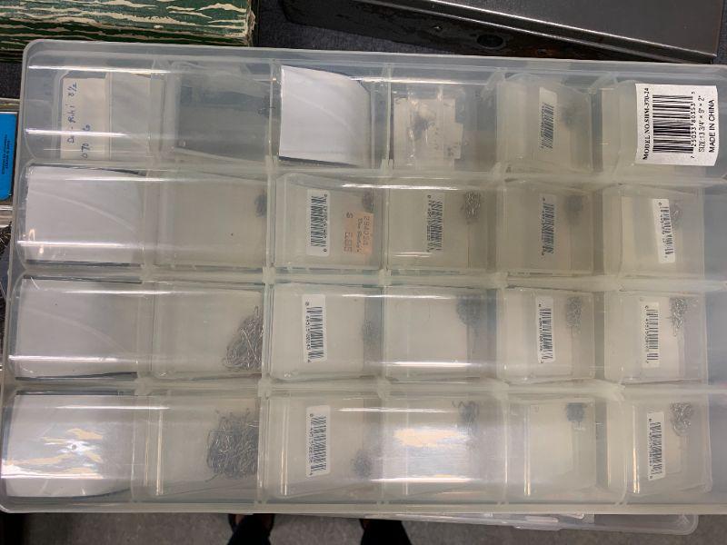 This box lid has detached but still snaps shut in place. Please notice some hooks missing from collection.