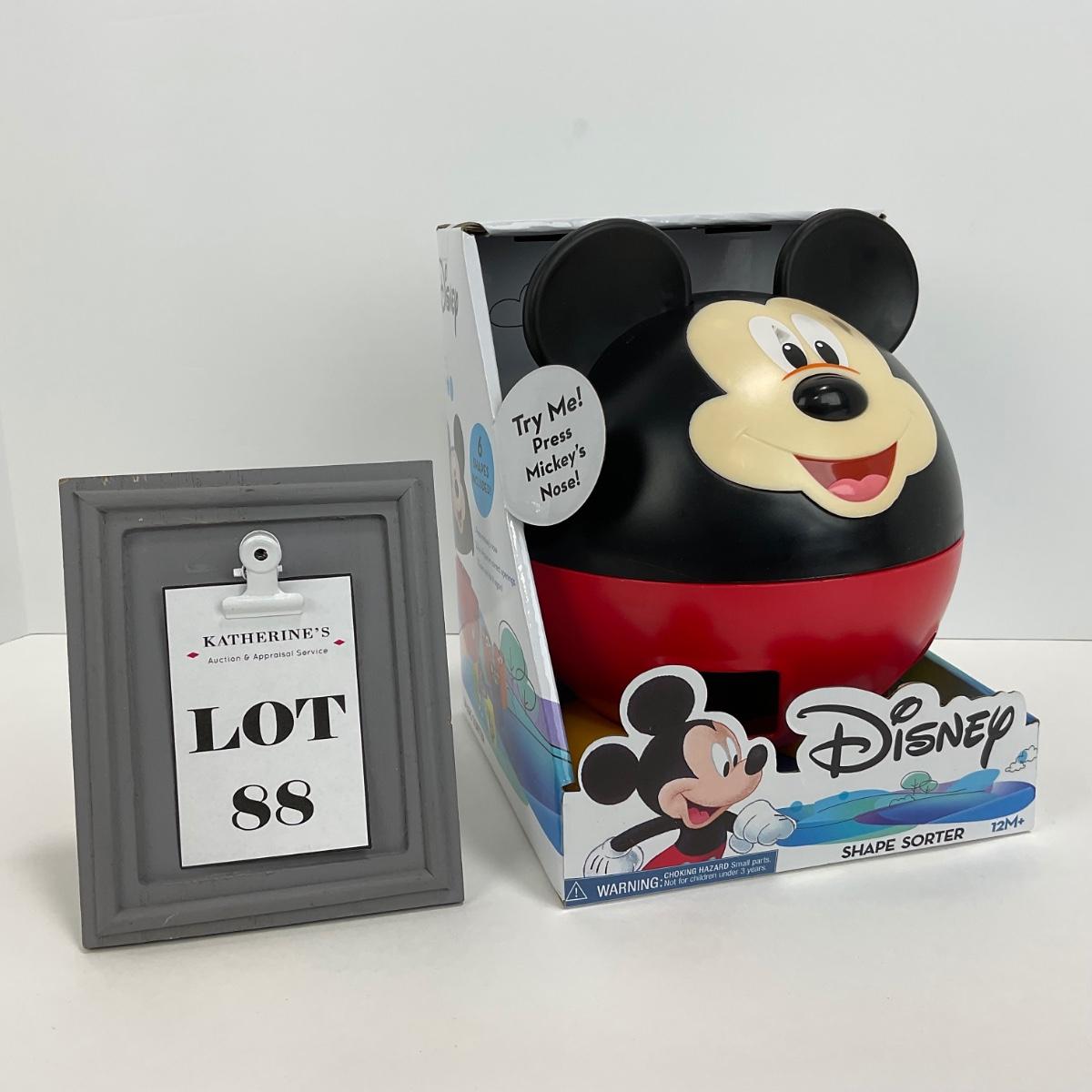 One Disney Mickey Mouse shape sorter in box. Please see photos for details and condition. Any condition statement is given as a courtesy to a client, is an opinion, and should not be treated as a statement of fact. Reference to condition written, oral or within a condition report shall not be regarded as a full account of condition and may not include all defects, alterations, or restorations. Absence of a condition report does not imply a lot is flawless or lacking imperfections or damage. Katherine’s Auction & Appraisal Service shall have no responsibility for any error or omission. Returns shall not be accepted on the basis of condition. ::: Shipping is available on this lot. If you require shipping you must let us know at the close of the auction. We will coordinate with you after the item has been won. Shipping fees will include insurance up to or exceeding the value of all items being mailed. If you have any questions regarding this lot please contact the auctioneer either via this website, by direct email or by phone. PICK UP TIMES and other important information can be found in the TERMS and DESCRIPTION of the auction. Please take a look for pertinent information. Thanks!