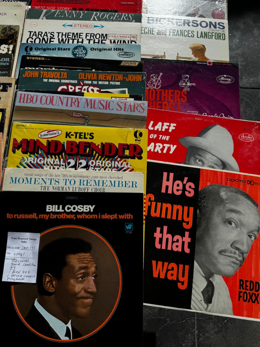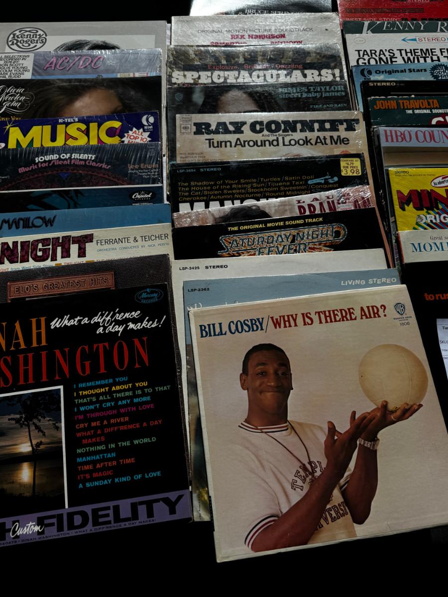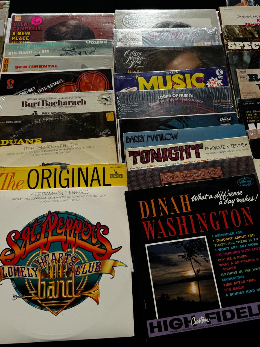 Comedy albums , pop, 1970s rock, easy listening, a few classical. Vinyl looks on spot inspection to be stored well, not warped, no water damage and in good played condition.