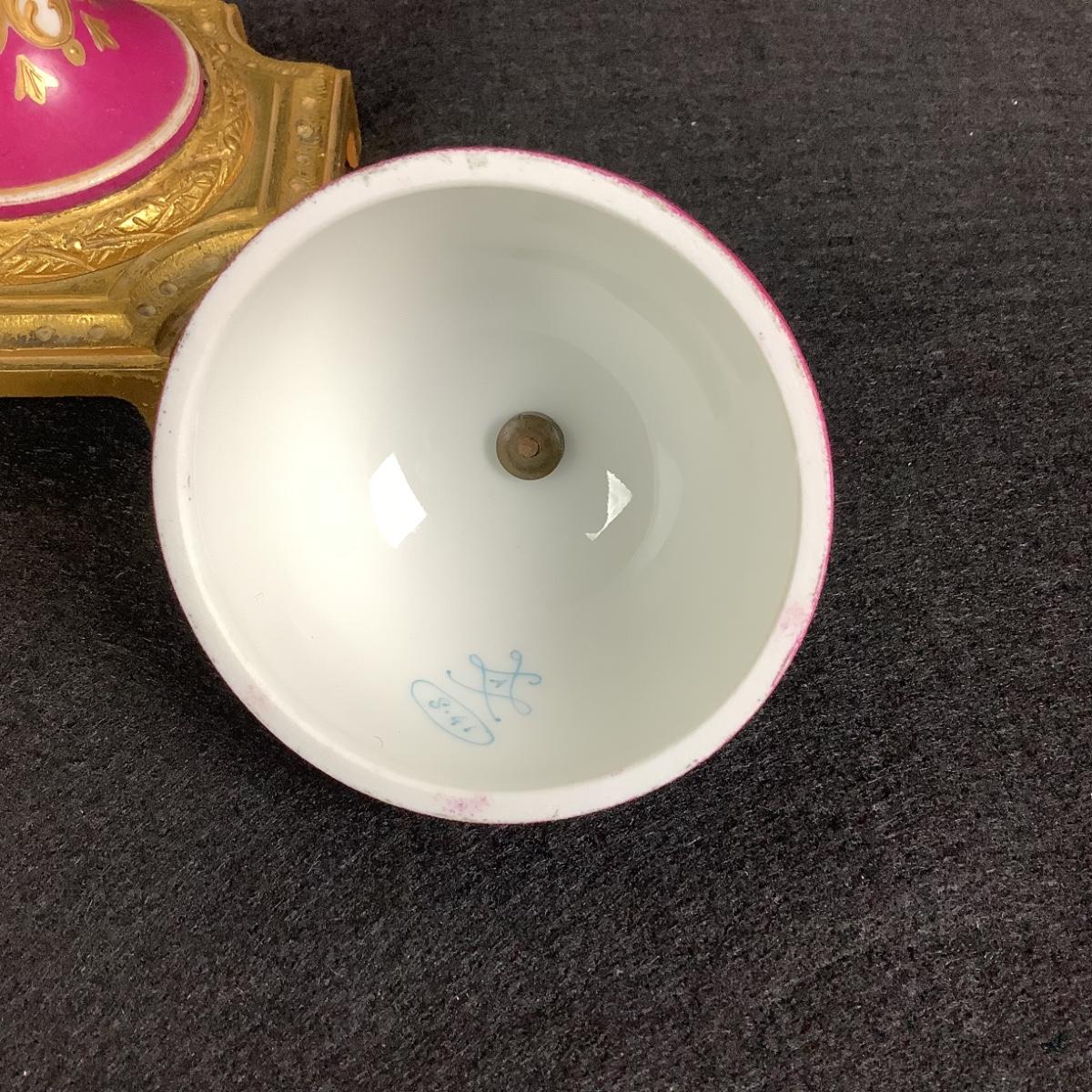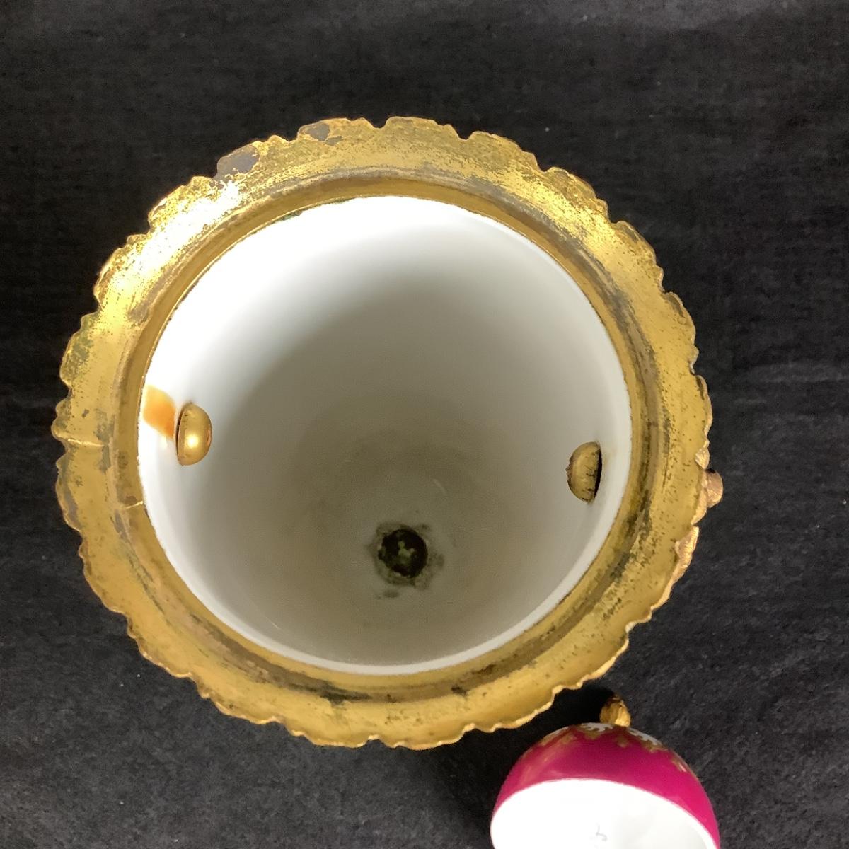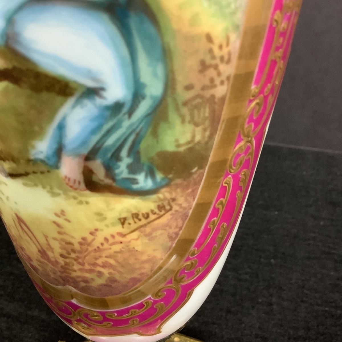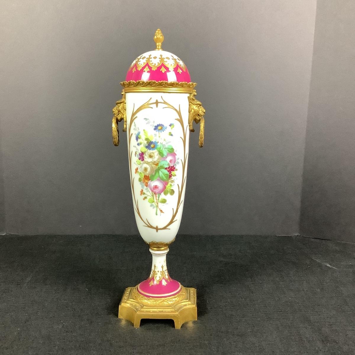 881 Antique French Serves Bronze Mounted Handpainted Porcelain Urn