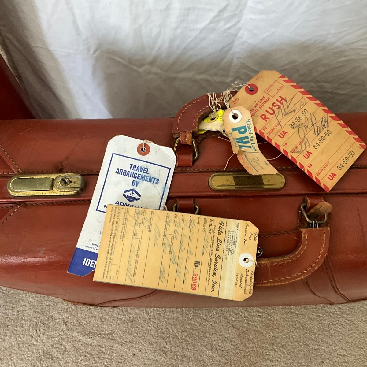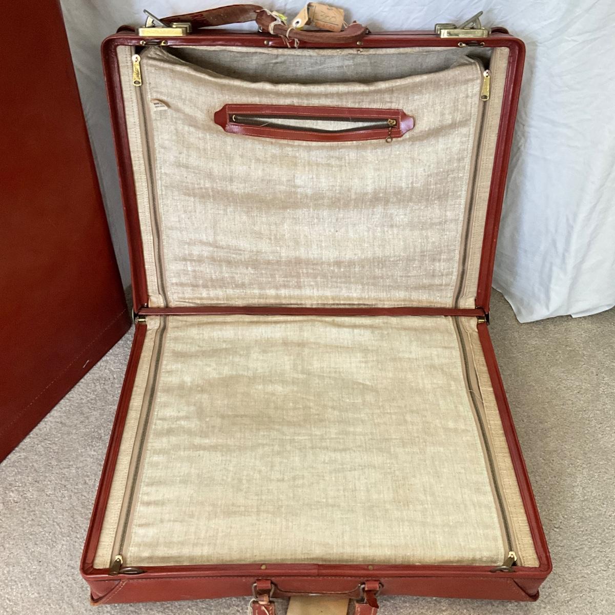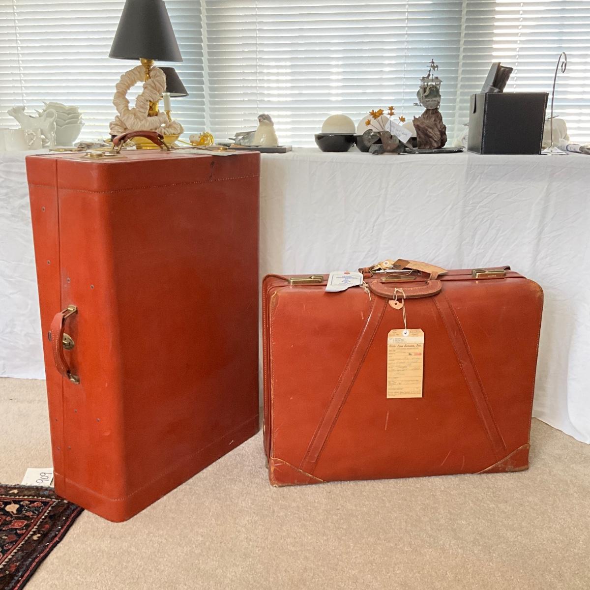 881 Pair of Towne Matching Leather Suitcases with Irish Linen Linings
