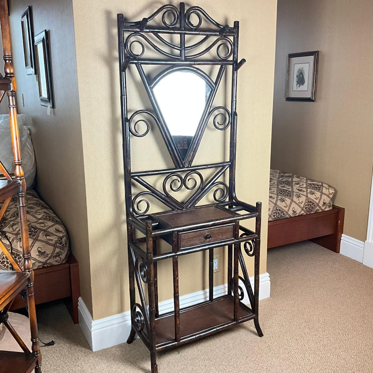 882 Rattan Mirrored Hall Tree