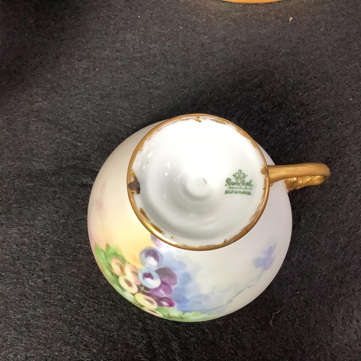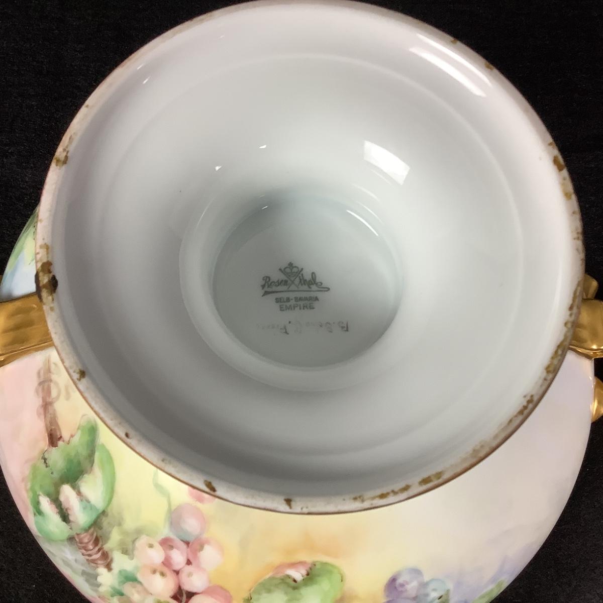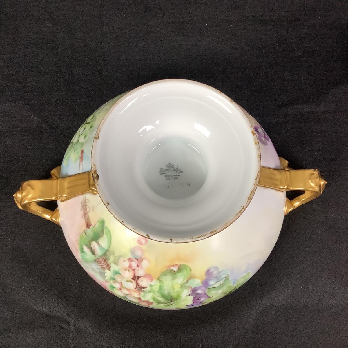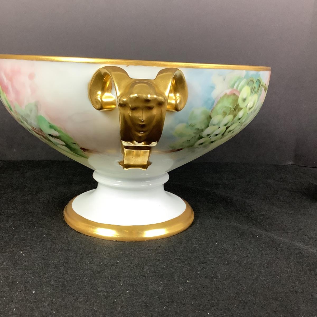 883 Antique Handpainted Signed Rosenthal Bavarian Handled Punch Bowl with cups