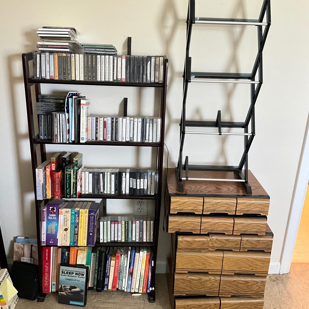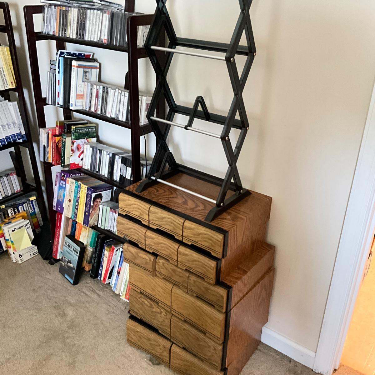 Comes with one empty cassette tape stand, one large wooden shelf, 6 empty cassette tape storage drawers