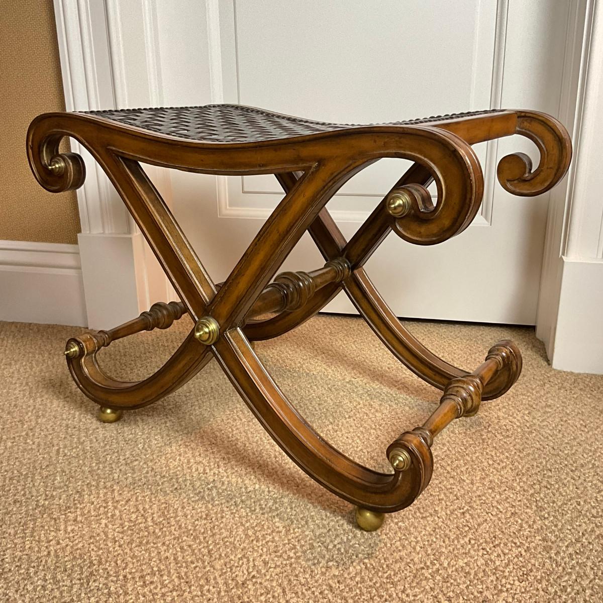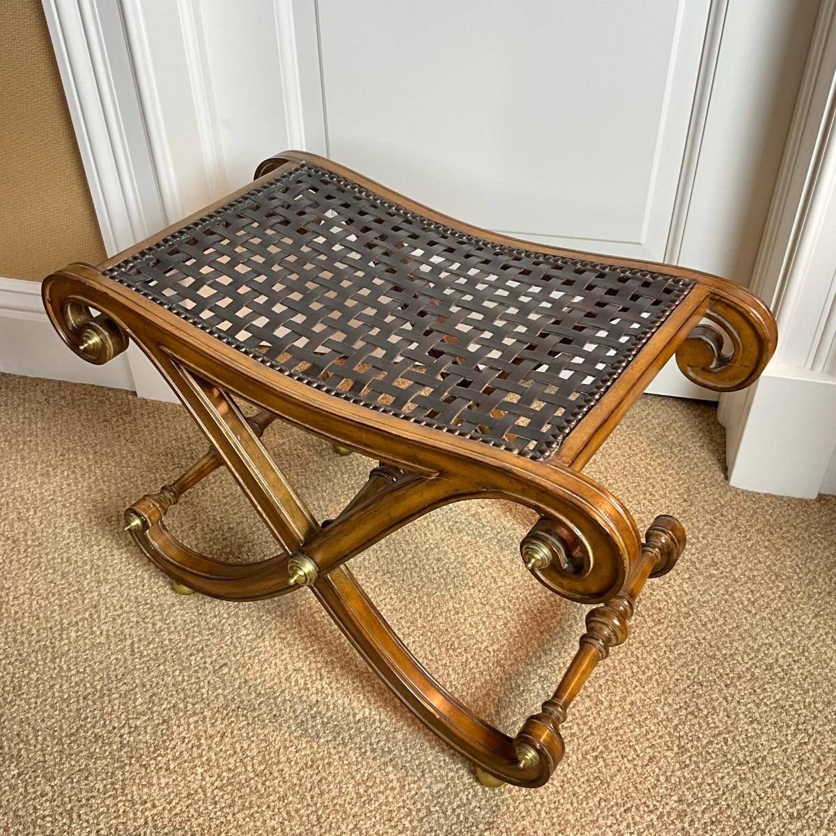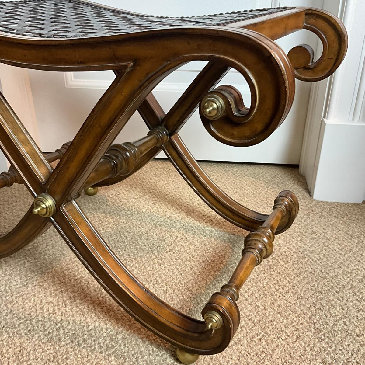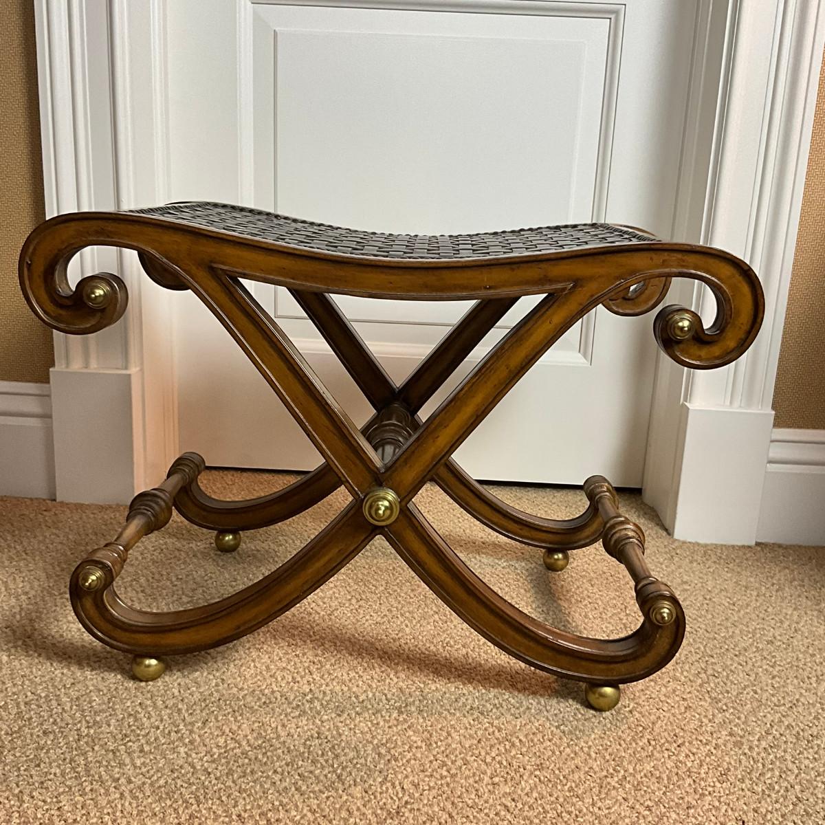 884 Regency Style Vintage Leatherweave Curved X-Base Stool