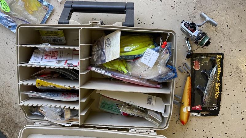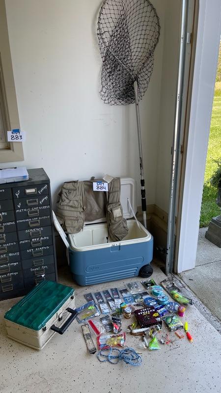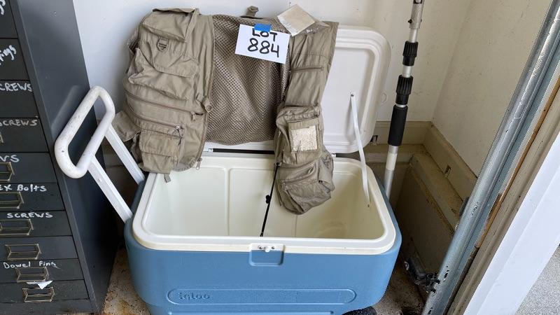 Igloo cooler, fishing vest, weights, hooks various sizes, Diawa Reel Model: RS700 and much more-see pics..