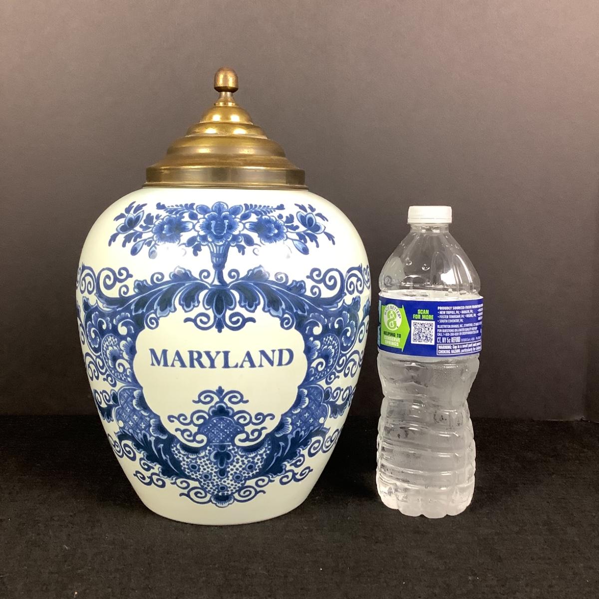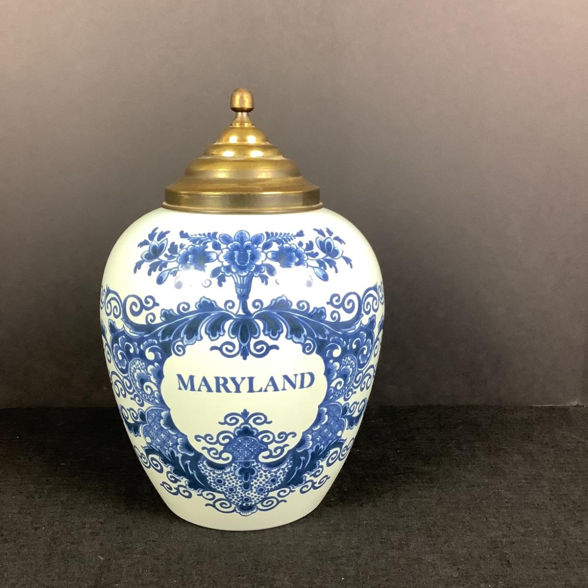 885 Vintage Delft Holland Polychrome Maryland Tobacco Jar