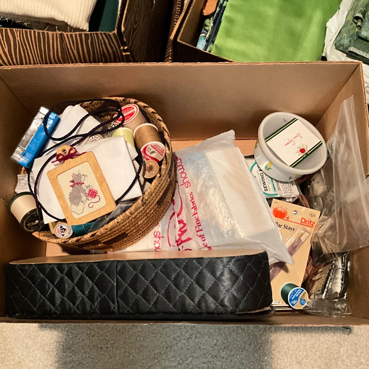 885 Lot of Three Boxes of Sewing Materials