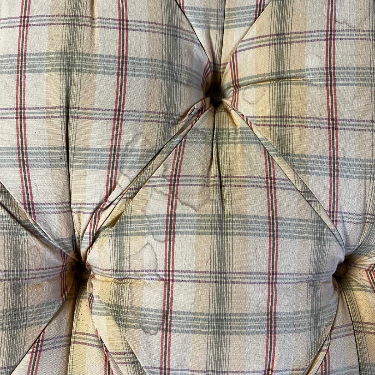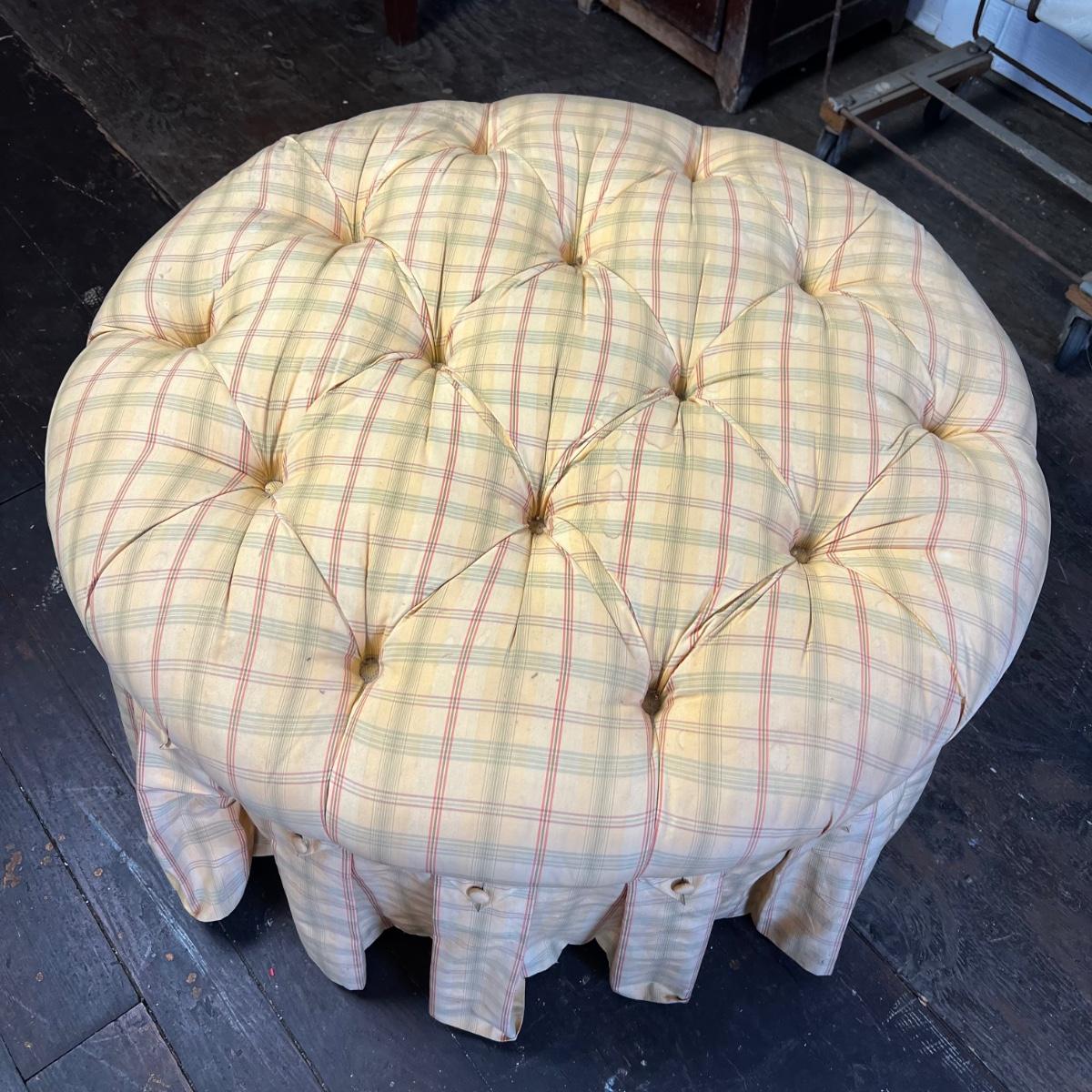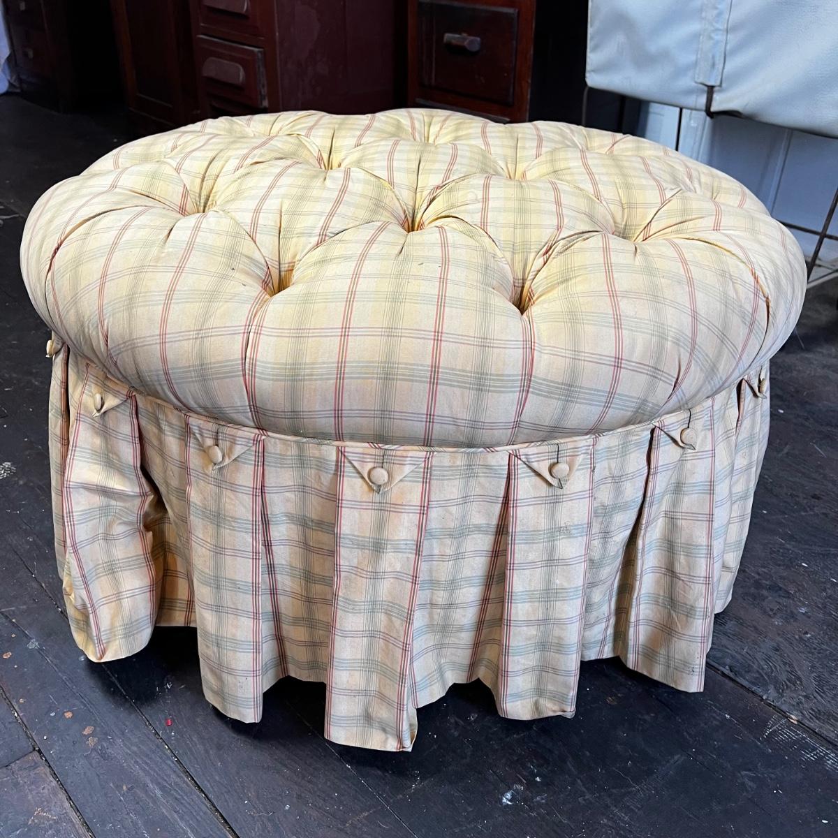 U885 Plaid Tufted Round Ottoman w/ Pleaded Skirt