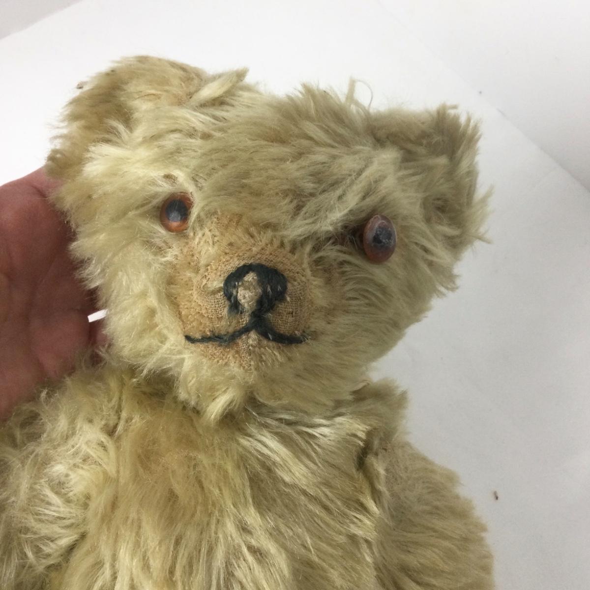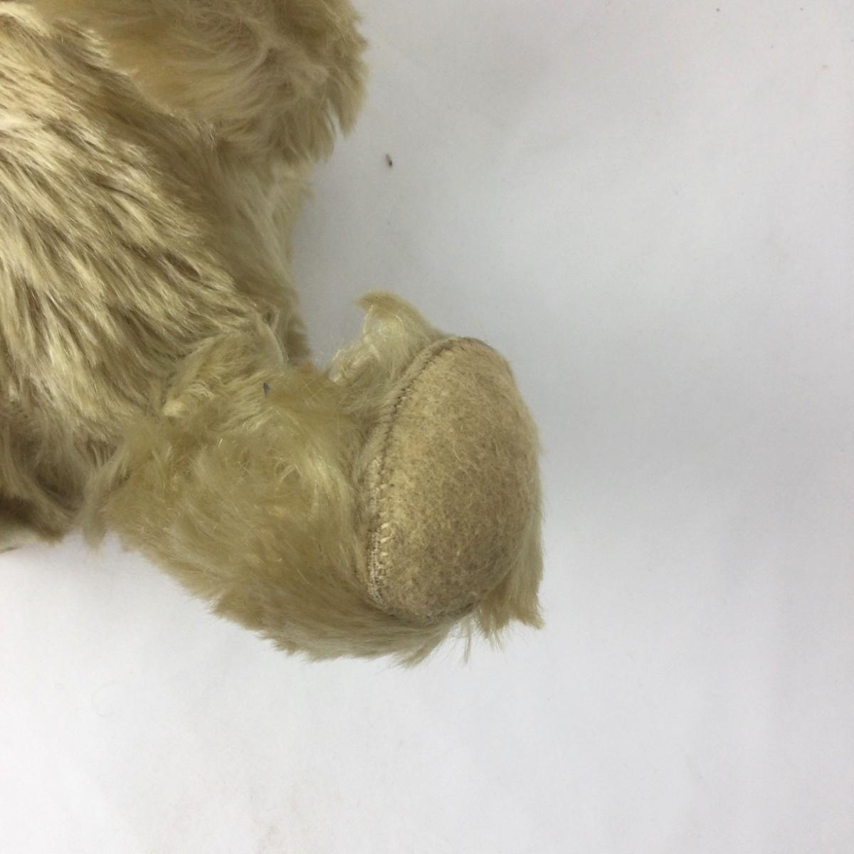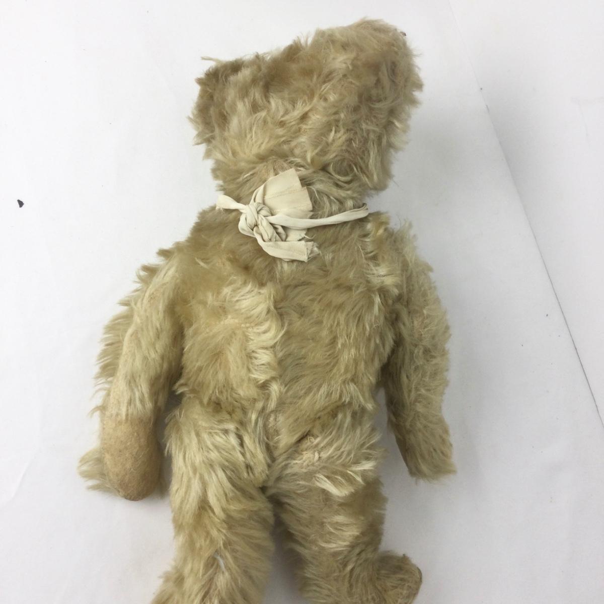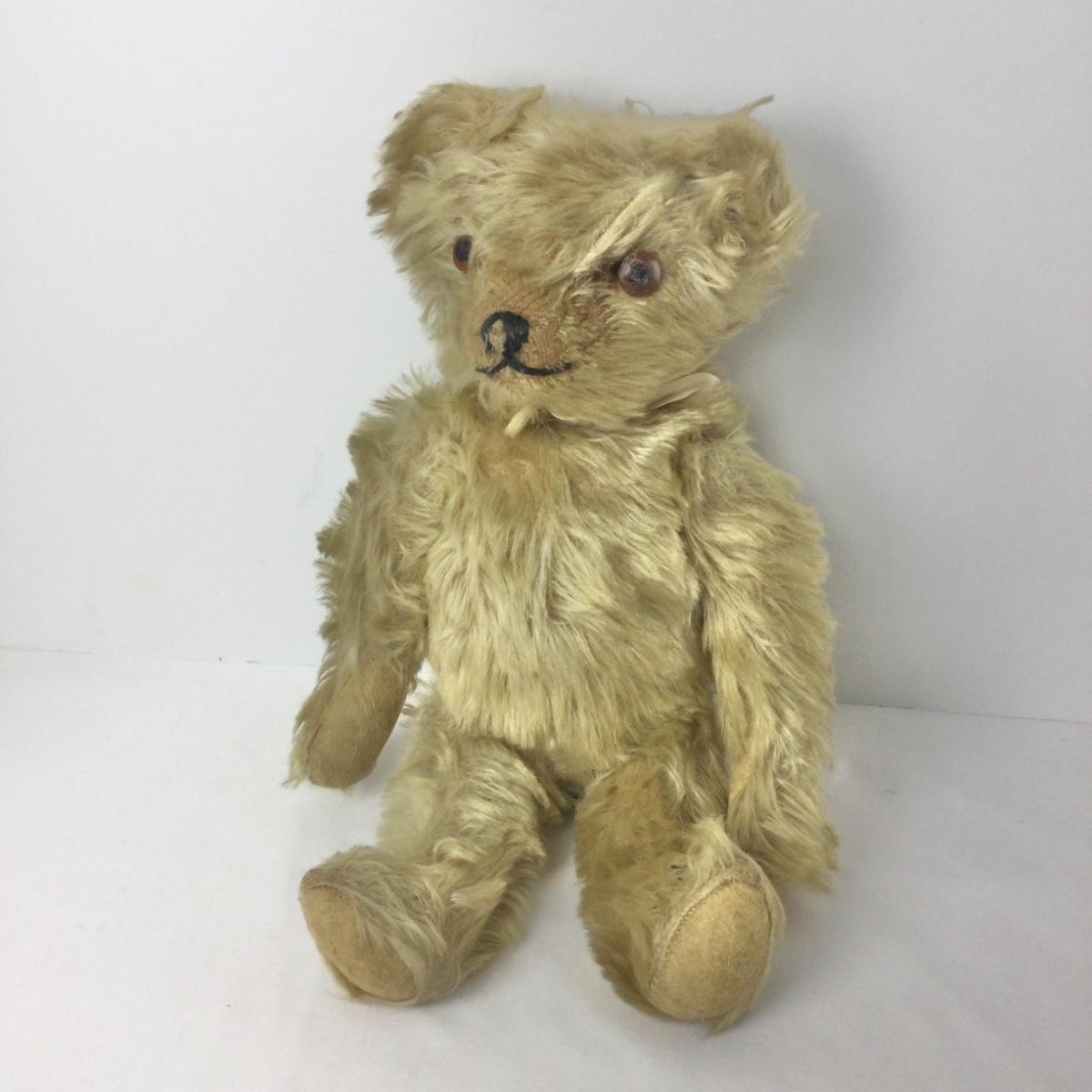 Bear is 14” from head to foot, it has jointed arms and legs, possibly Steiff bear, well loved.