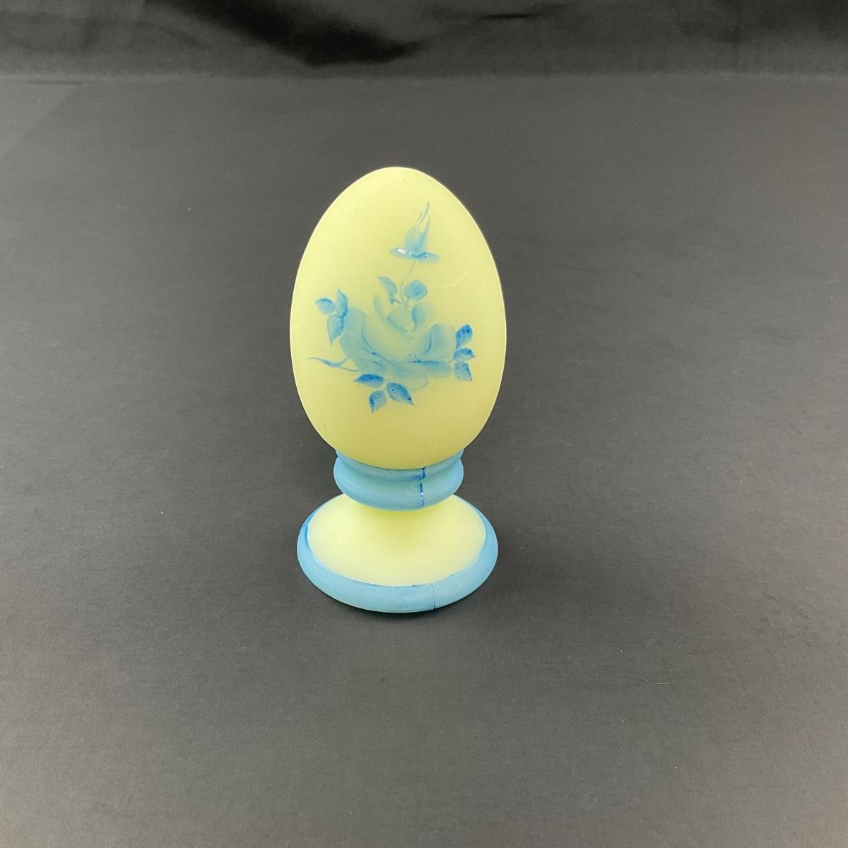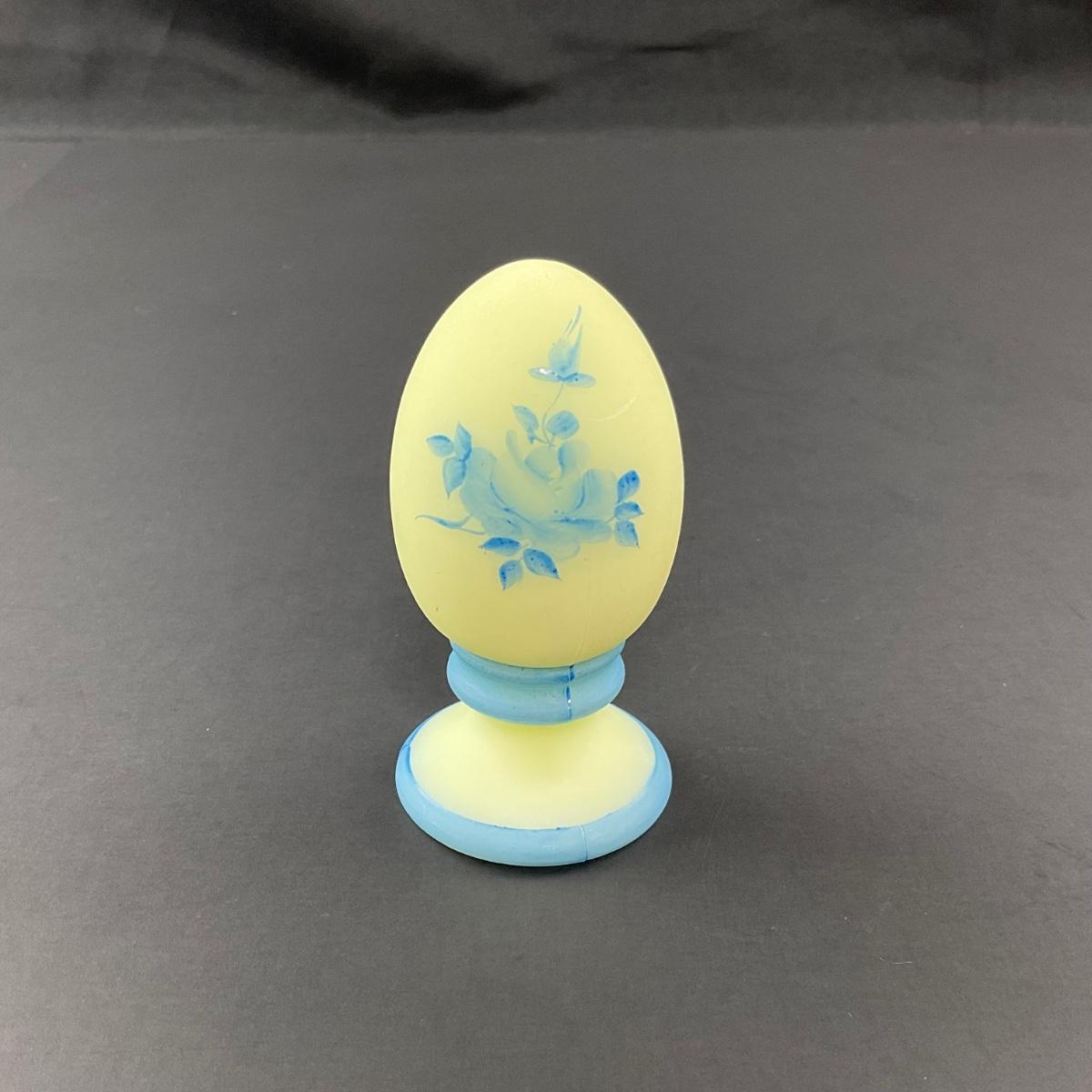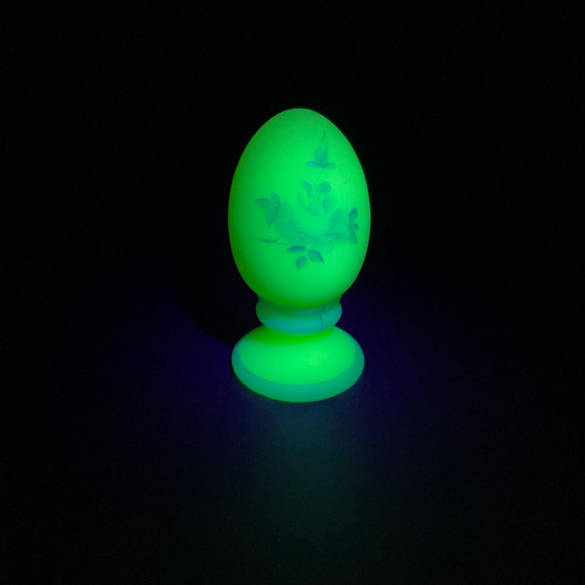 -89- FENTON | Hand Painted Egg | Uranium Glass | Signed