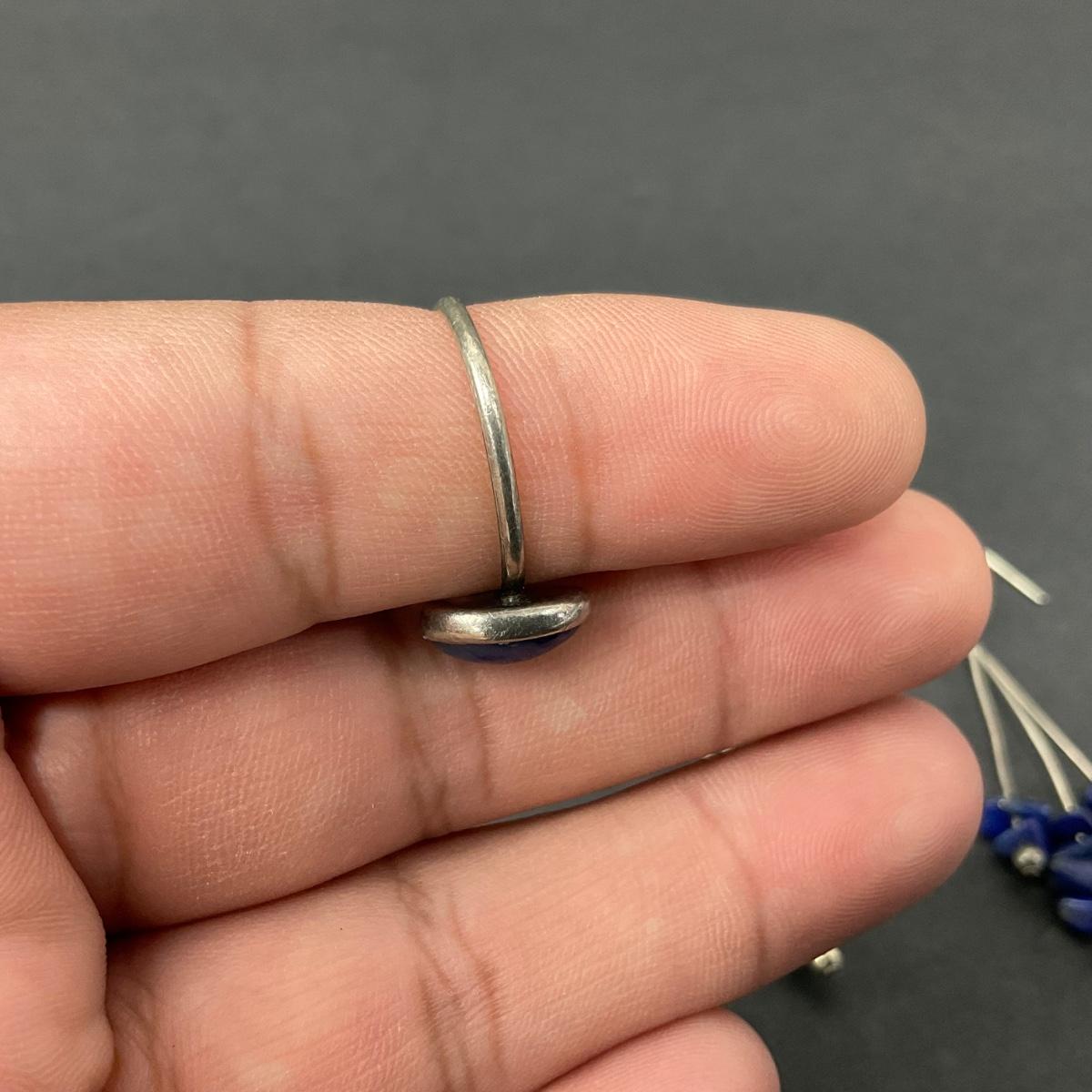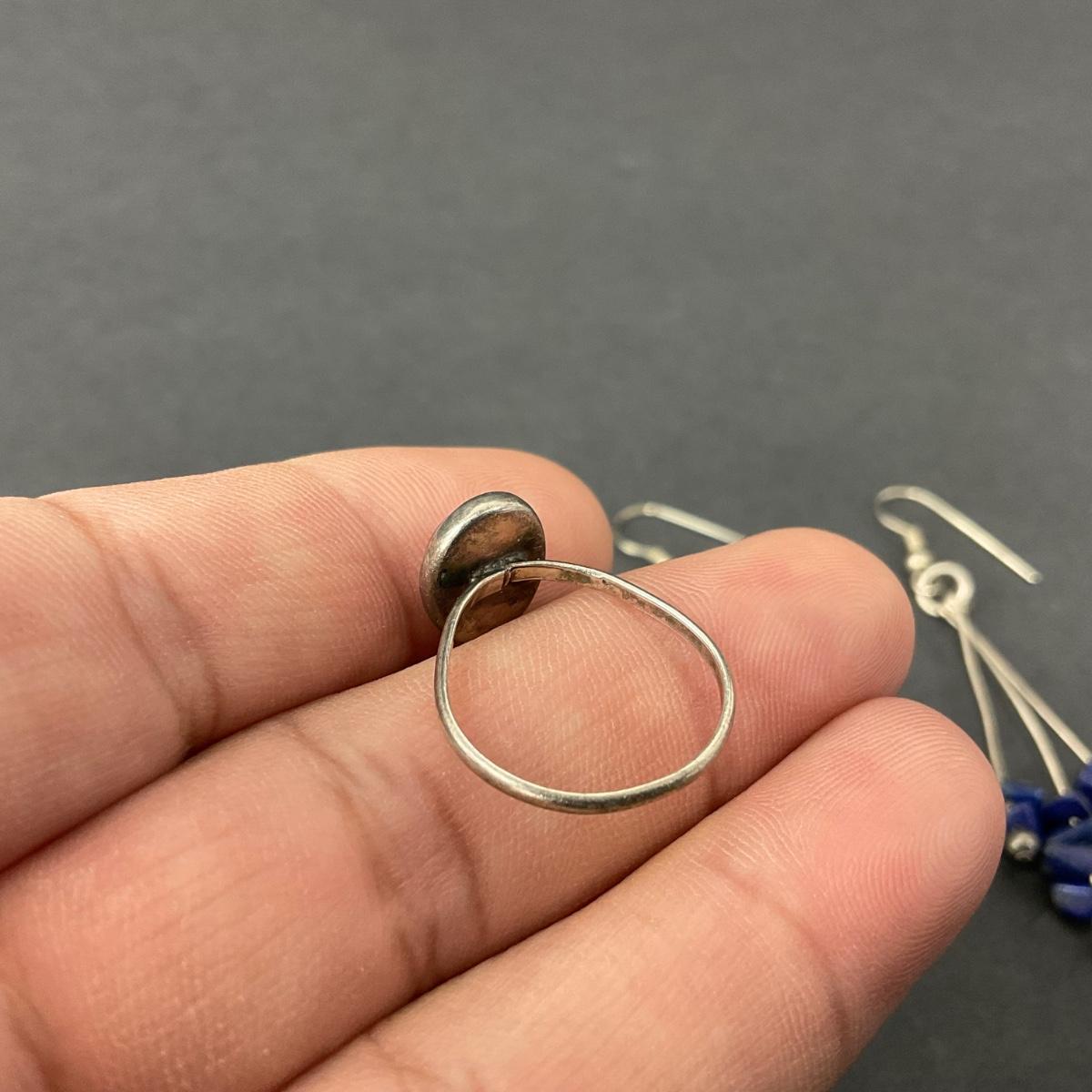 One pair of what we believe to be blue lapis stone earrings and one matching blue lapis ring. The ring is size . Please see photos for details and condition. Any condition statement is given as a courtesy to a client, is an opinion, and should not be treated as a statement of fact. Reference to condition written, oral or within a condition report shall not be regarded as a full account of condition and may not include all defects, alterations, or restorations. Absence of a condition report does not imply a lot is flawless or lacking imperfections or damage. Katherine’s Auction & Appraisal Service shall have no responsibility for any error or omission. Returns shall not be accepted on the basis of condition. ::: Shipping is available on this lot. If you require shipping you must let us know at the close of the auction. We will coordinate with you after the item has been won. Shipping fees will include insurance up to or exceeding the value of all items being mailed. If you have any questions regarding this lot please contact the auctioneer either via this website, by direct email or by phone. PICK UP TIMES and other important information can be found in the TERMS and DESCRIPTION of the auction. Please take a look for pertinent information. Thanks!