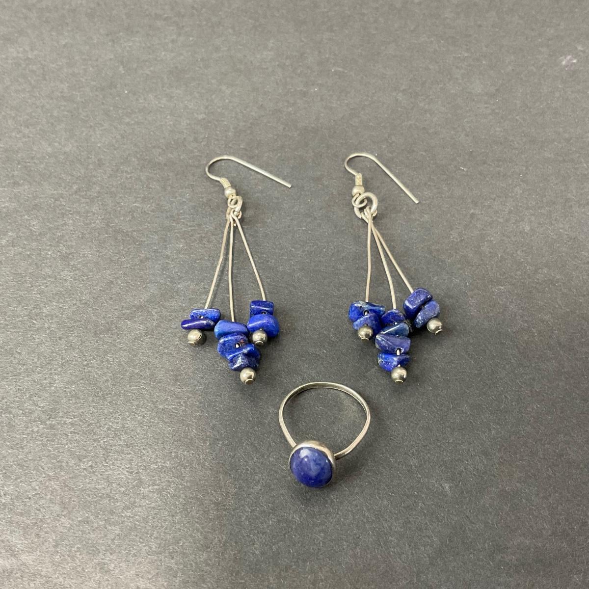 -89- JEWELRY | Pair Of Blue Lapis Earrings & Matching Ring