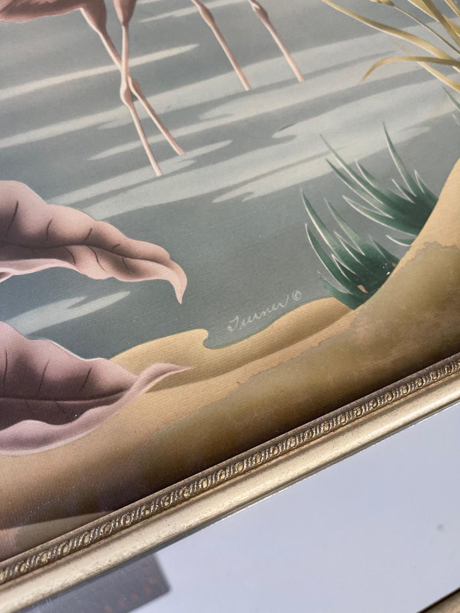 #89 Pink Flamingo Turner Print Mirrored Frame