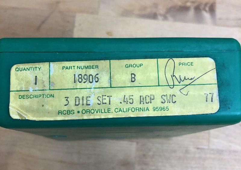 #89 Reloading Dies 18906B 3 die set 45 ACP SWC