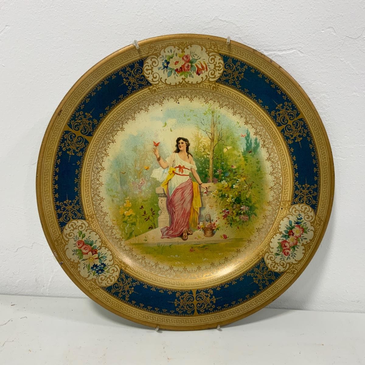 Beautiful Vienna Tin Art Plate, all original, signed and dated on the revers. Measures 10 inches around and comes with a plate hanger. Please see photos for details and condition. ::: Shipping is available on this lot. If you require shipping you must let us know at the close of the auction. We will coordinate with you after the item has been won. Shipping fees will include insurance up to or exceeding the value of all items being mailed. If you have any questions regarding this lot please contact the auctioneer either via this website, by direct email or by phone. PICK UP TIMES and other important information can be found in the TERMS and DESCRIPTION of the auction. Please take a look for pertinent information. Thanks!