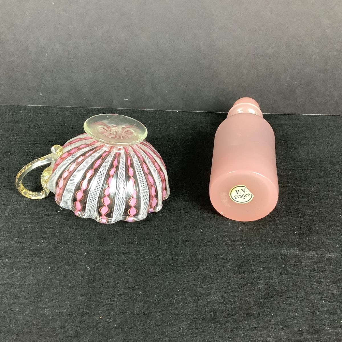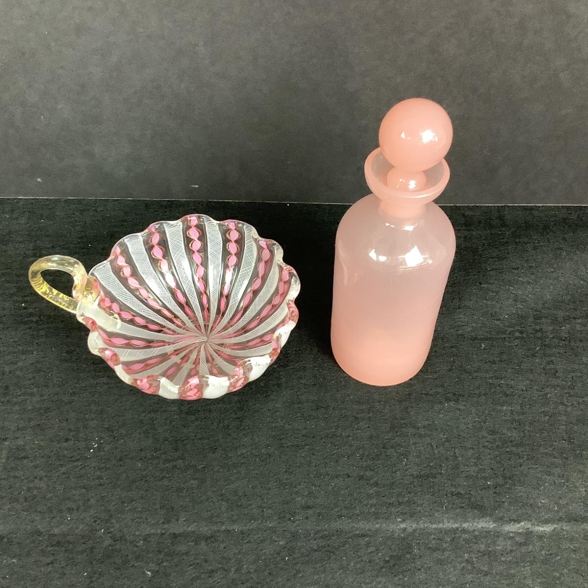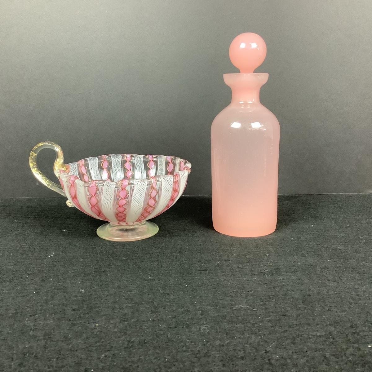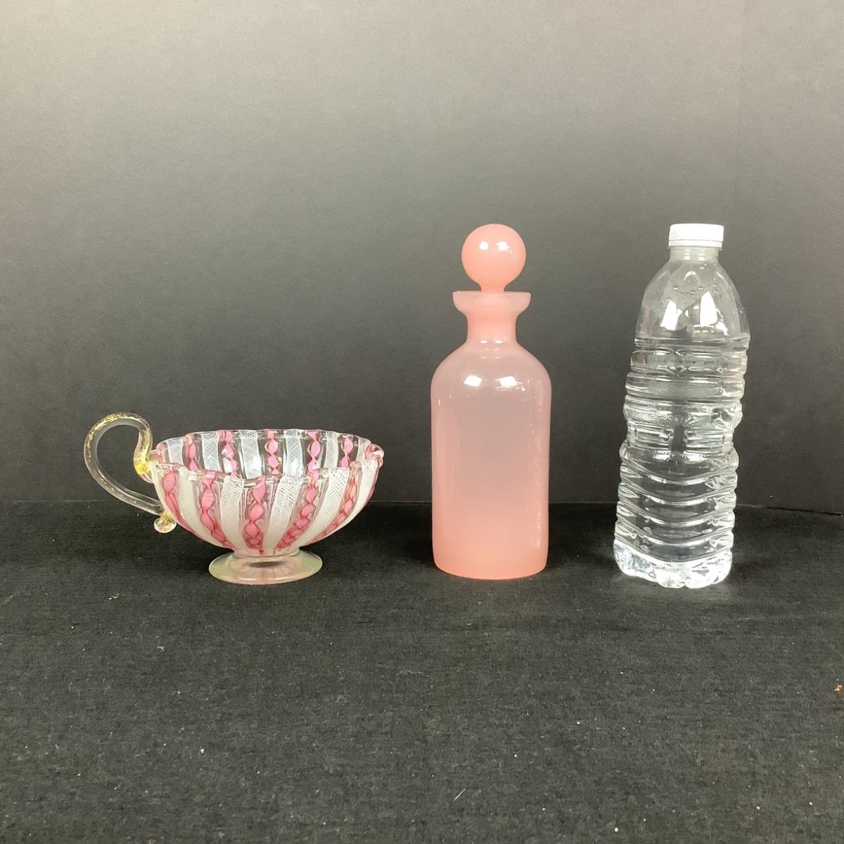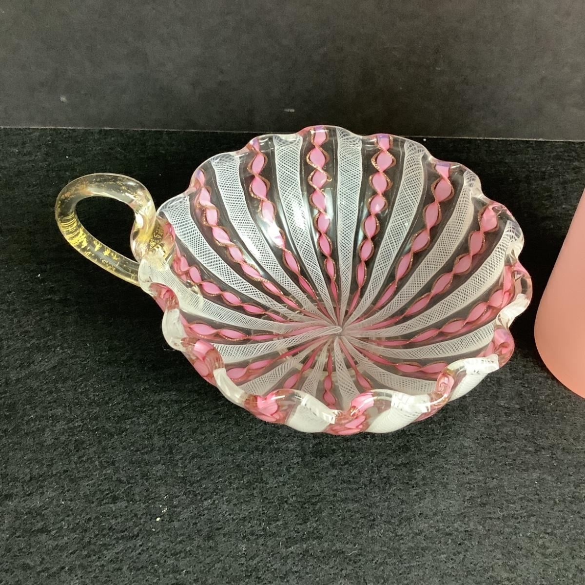 Beautiful Pink Latticino Murano Glass nappy measuring 5.5" round x 2.75" high
