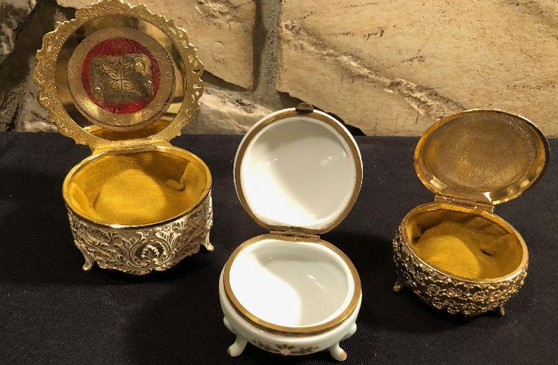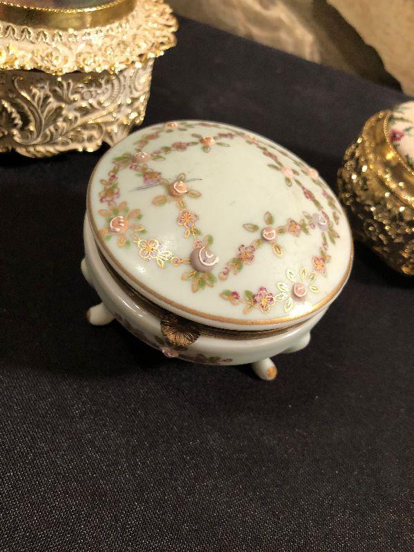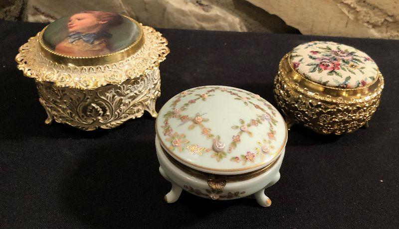 #891 3 Dresser Jars, 1 metal and 2 porcelain