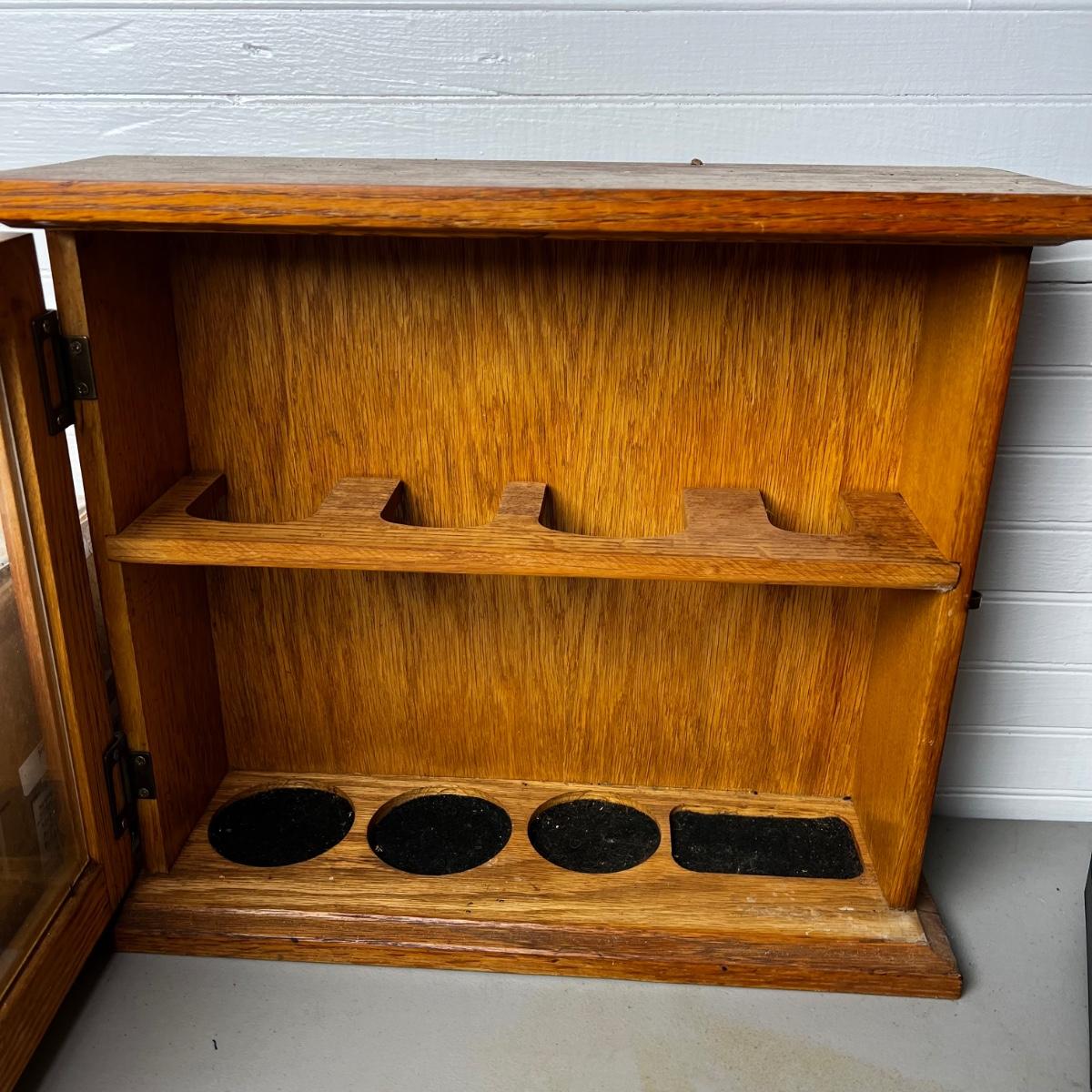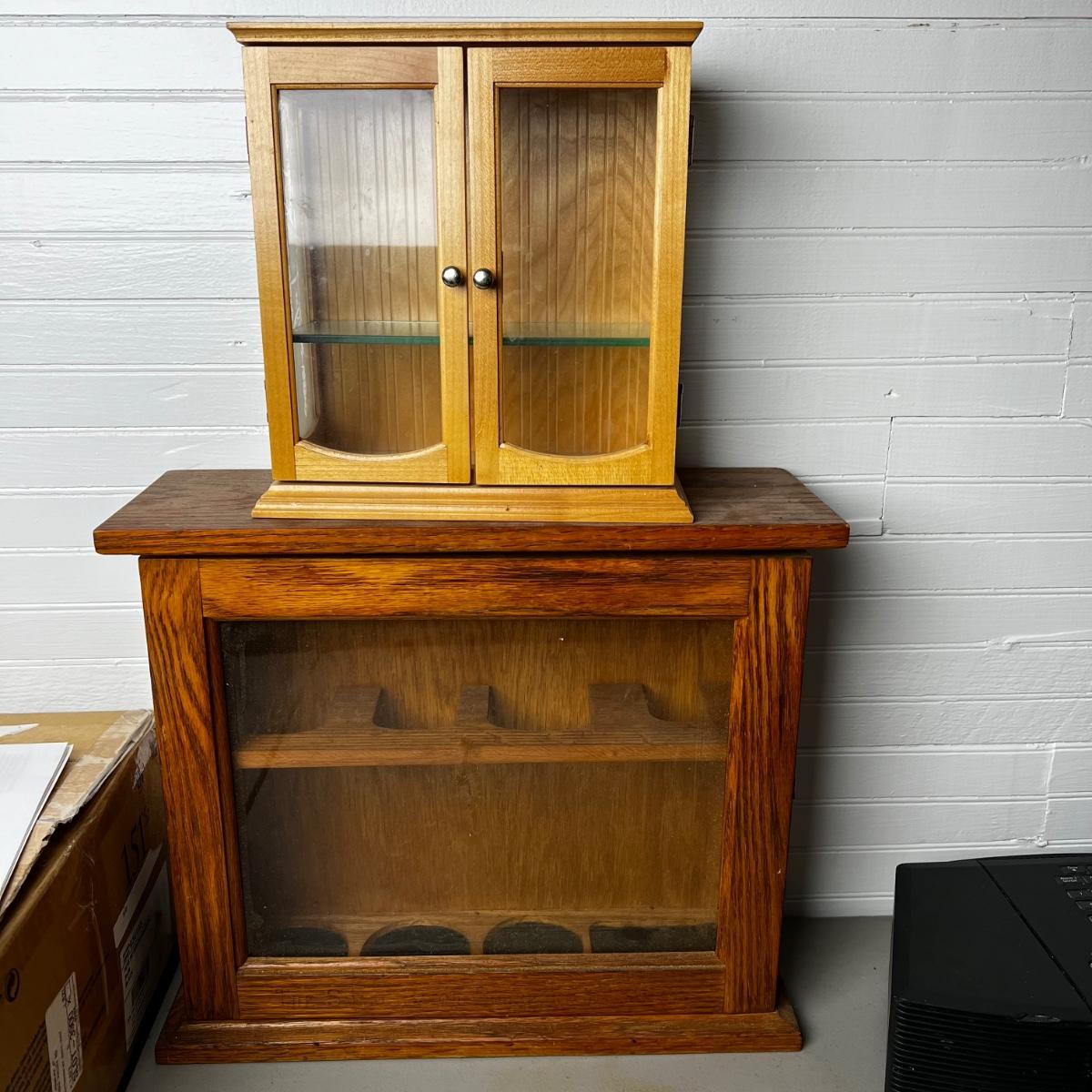 U891 Vintage Oak Liquor Cabinet & Small Glass Display
