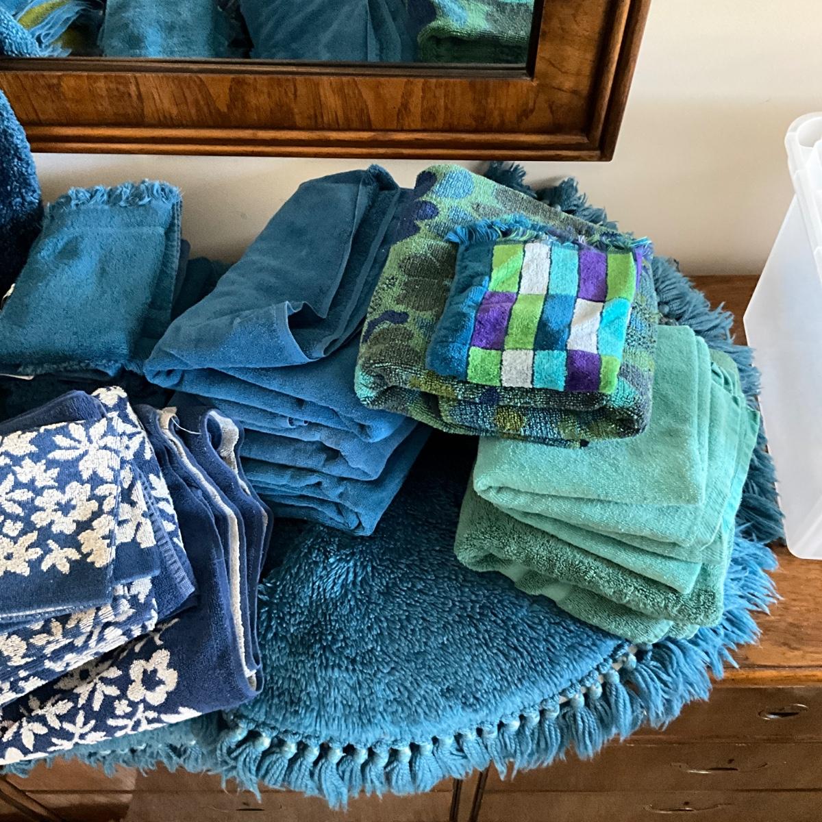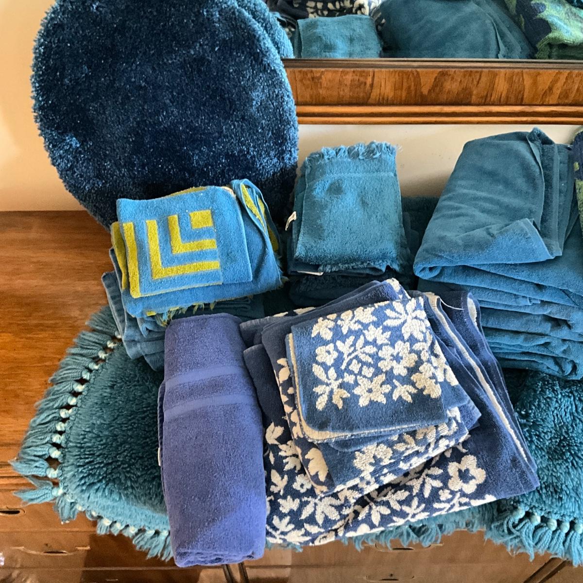Comes with bath towels, and hand towels, multiple bath matts, all bath towels have different patterns