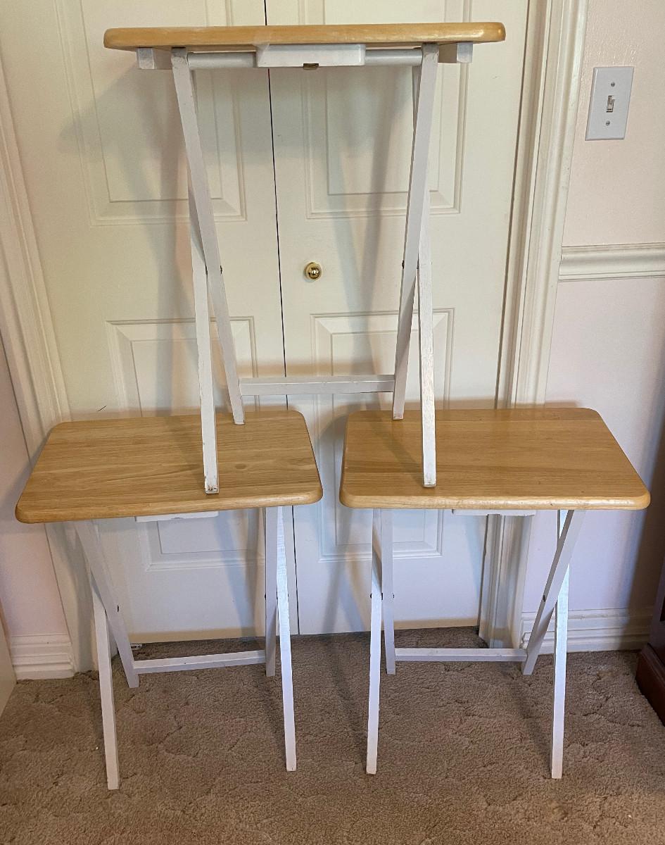 #892 U3 White and Maple Finish TV Trays (3)
