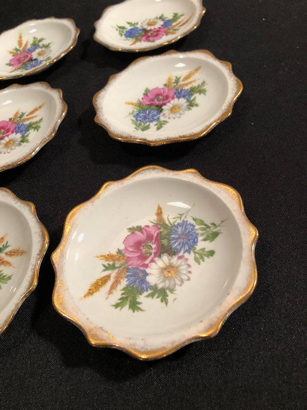 4-1/2" Diameter. White with a gold rim