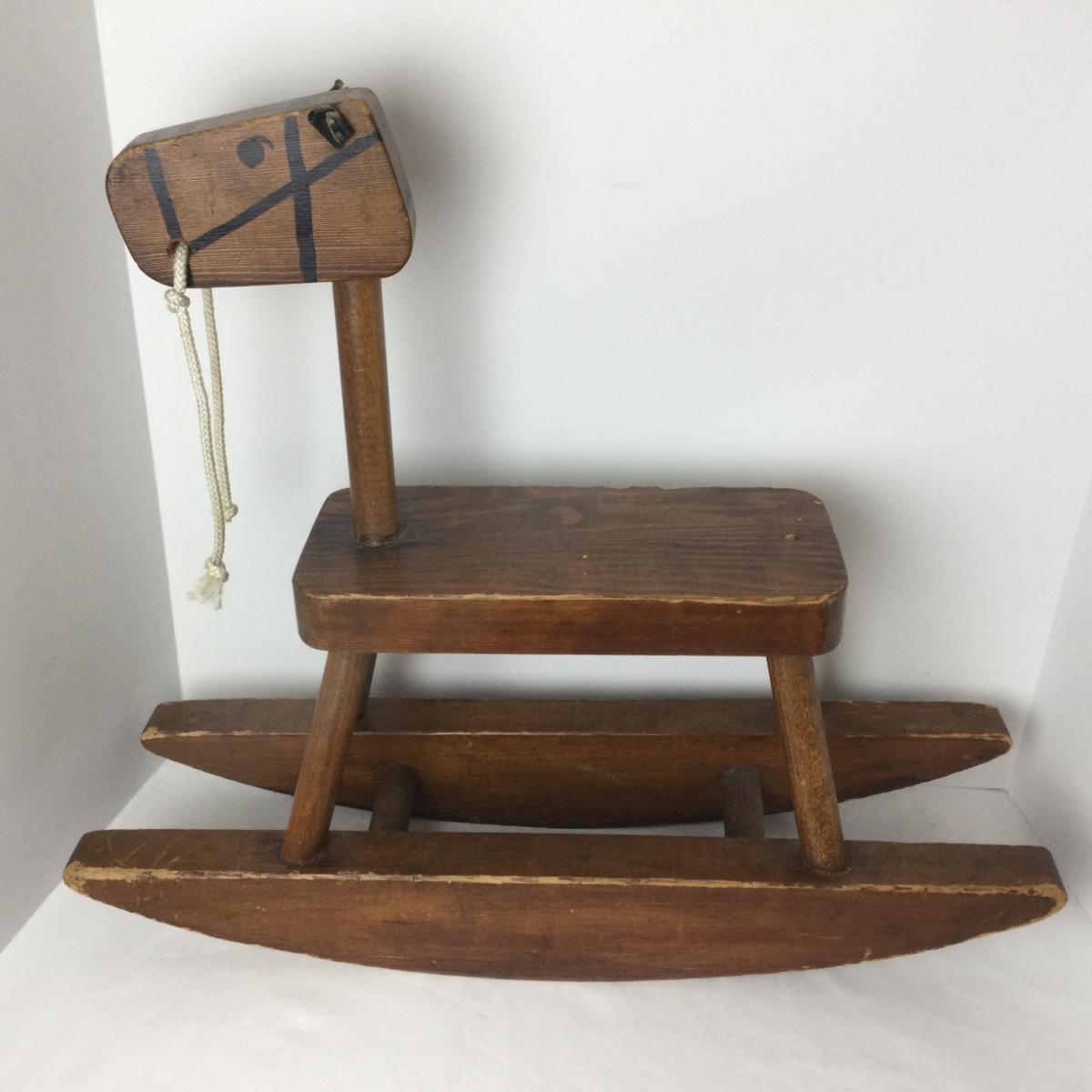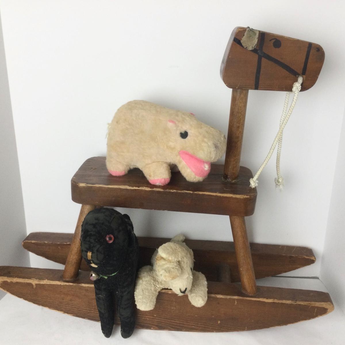 894 Vintage Wooden Rocking Horse & Assorted Stuffed Animals