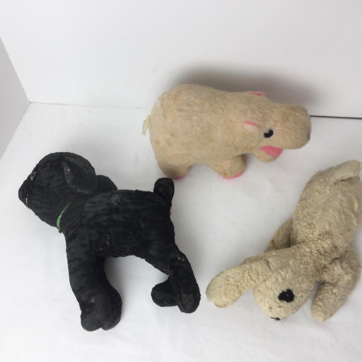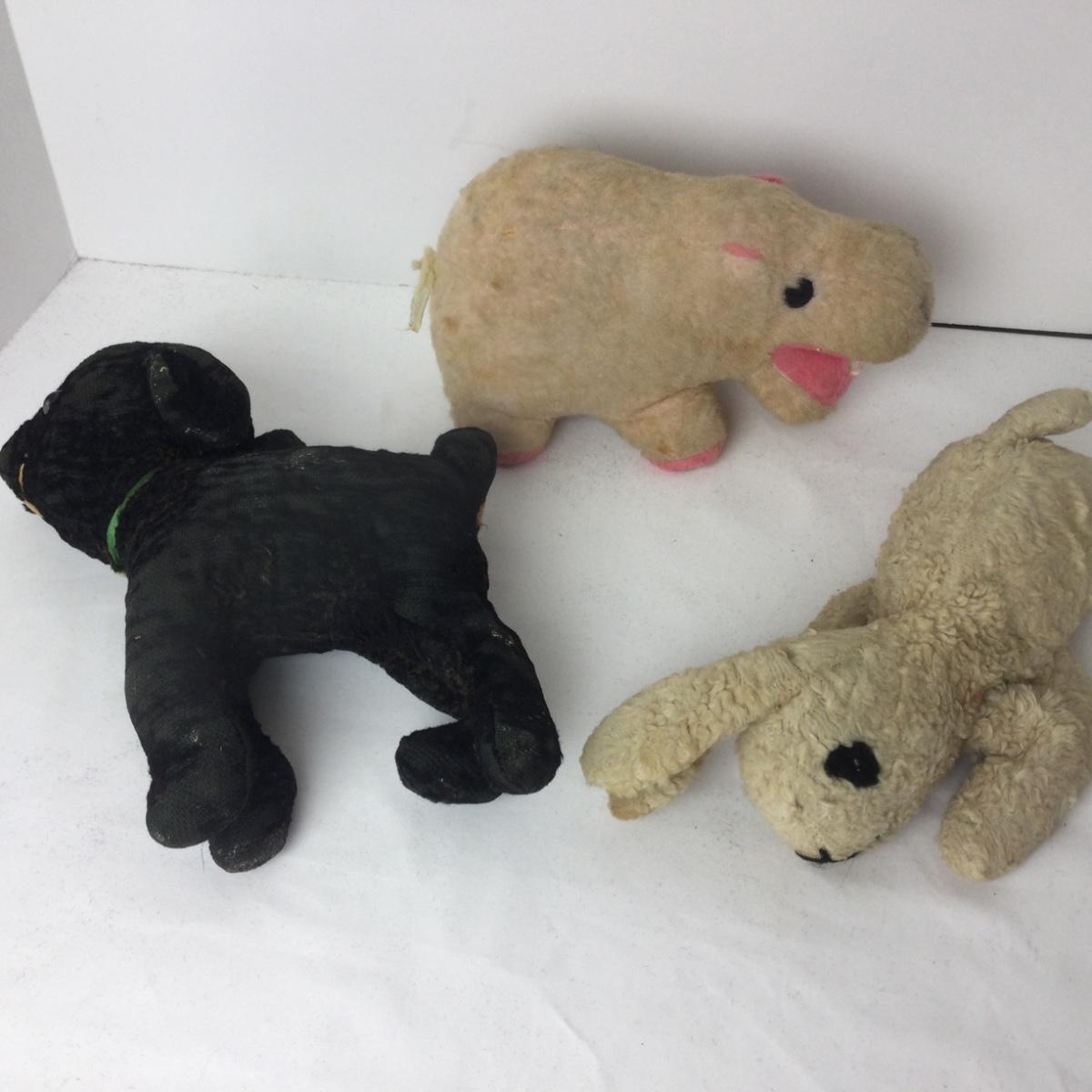 Rocking horse is 21” tall and 23” wide. The stuffed animals are all well loved.