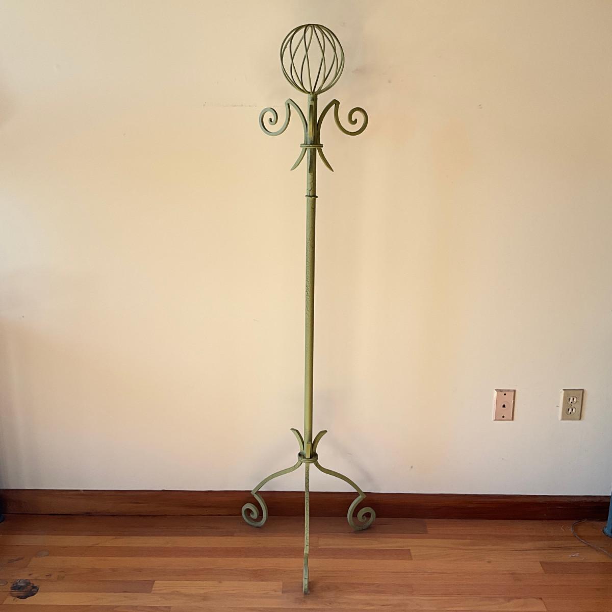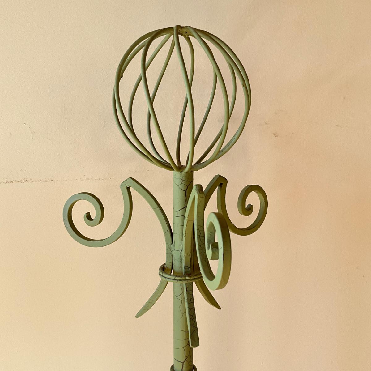 895 Vintage Wrought Iron Green Painted Hat Rack