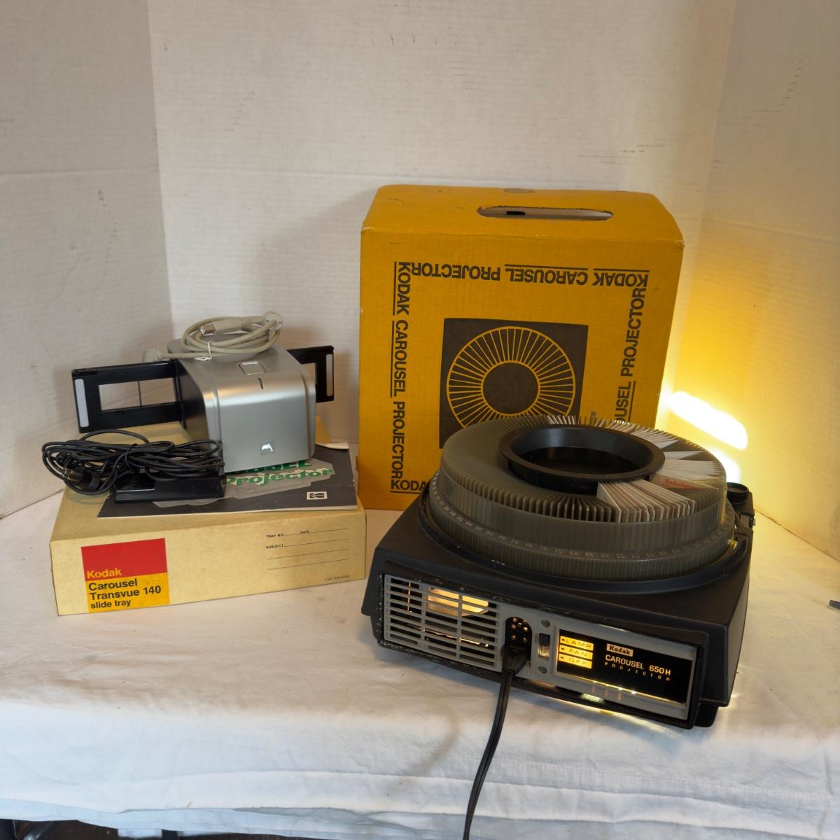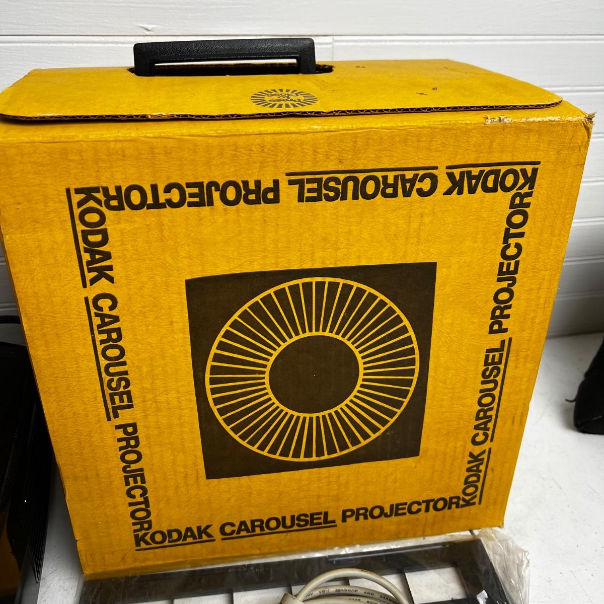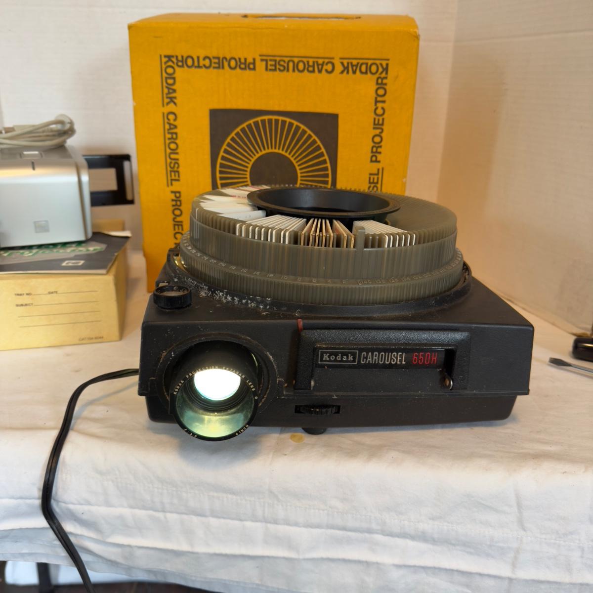Includes Kodak carousel projector, Memor-ease film & slide converter,