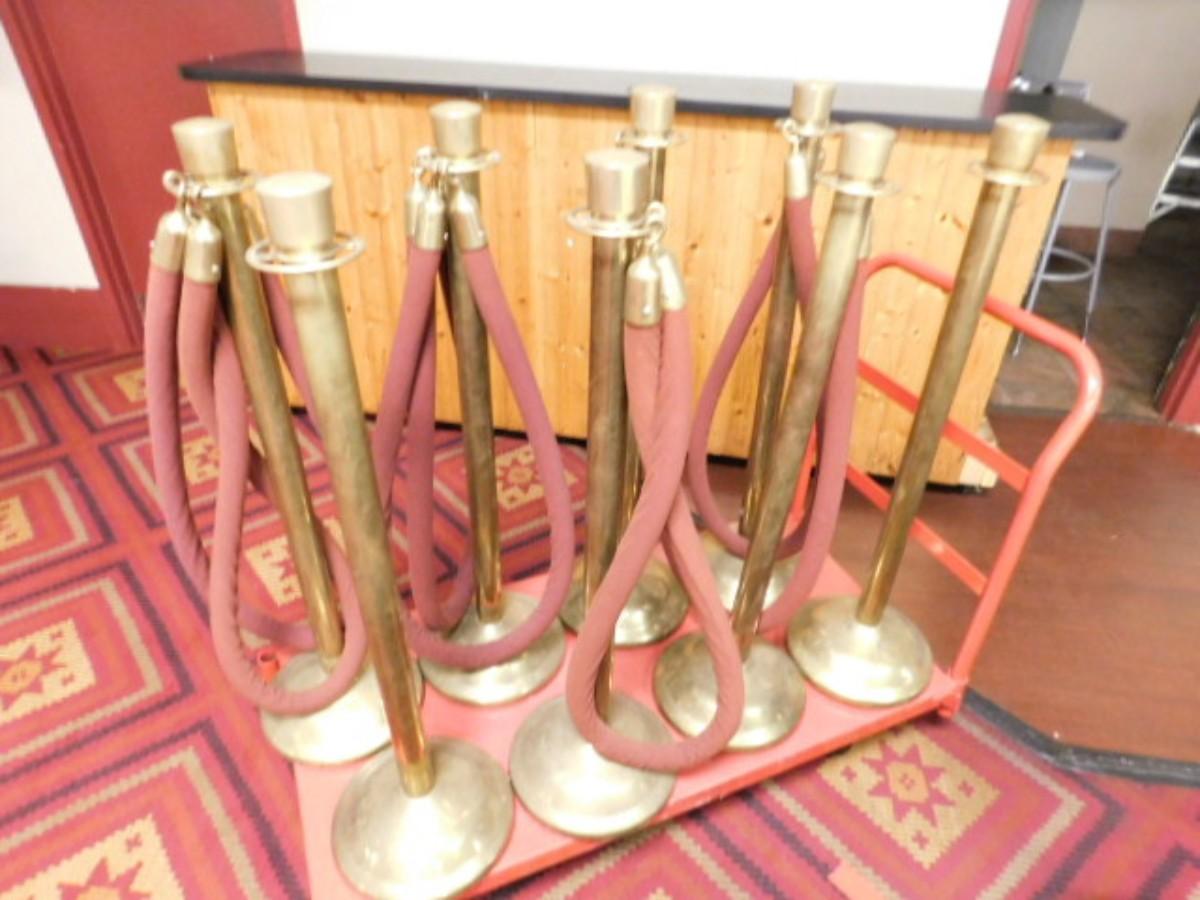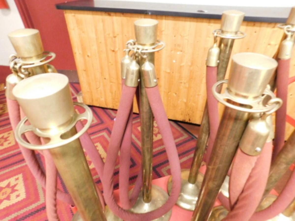 8ct Vintage Brass Post Stanchions with Velvet Rope Barriers