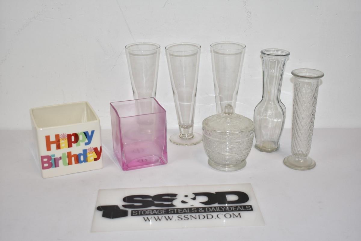 8pc Decorative: 5 Vases, Decorative Dish, Planters - Used