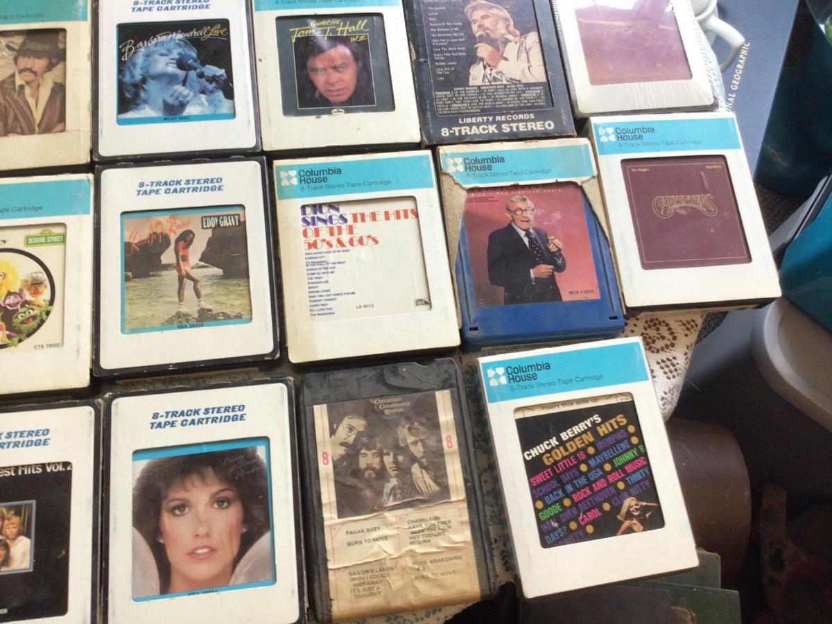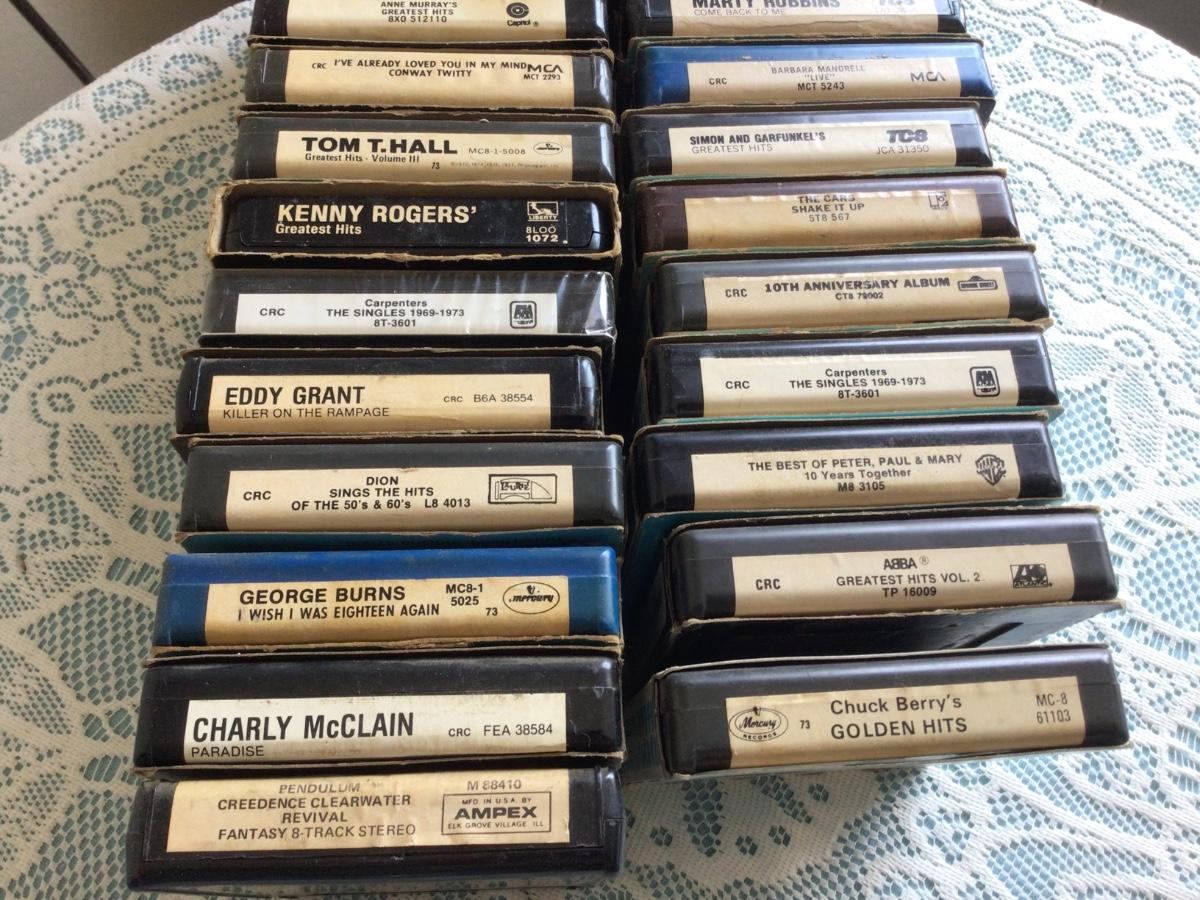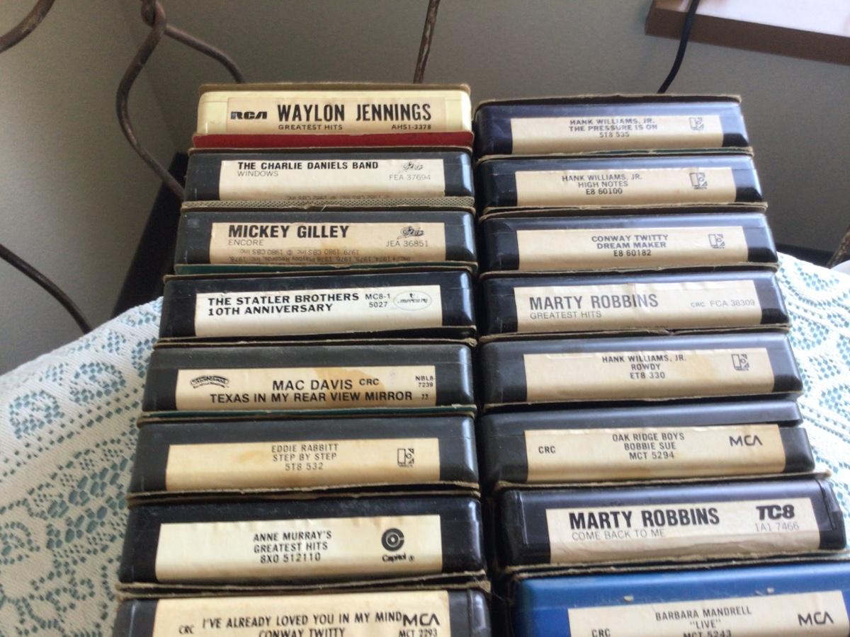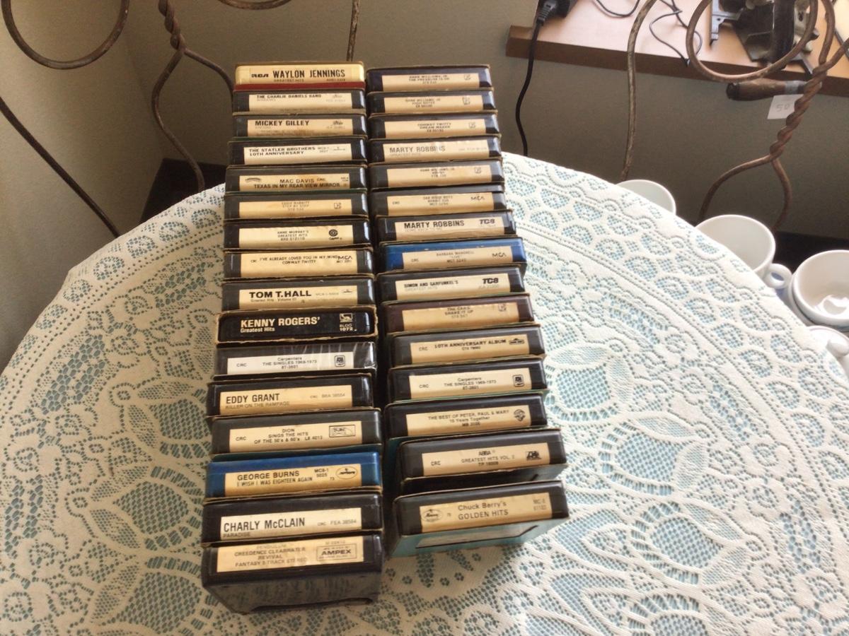 You get a great lot of 8-track tapes. There are 31 total 12 Rock and Roll and 29 Country. Not tested.