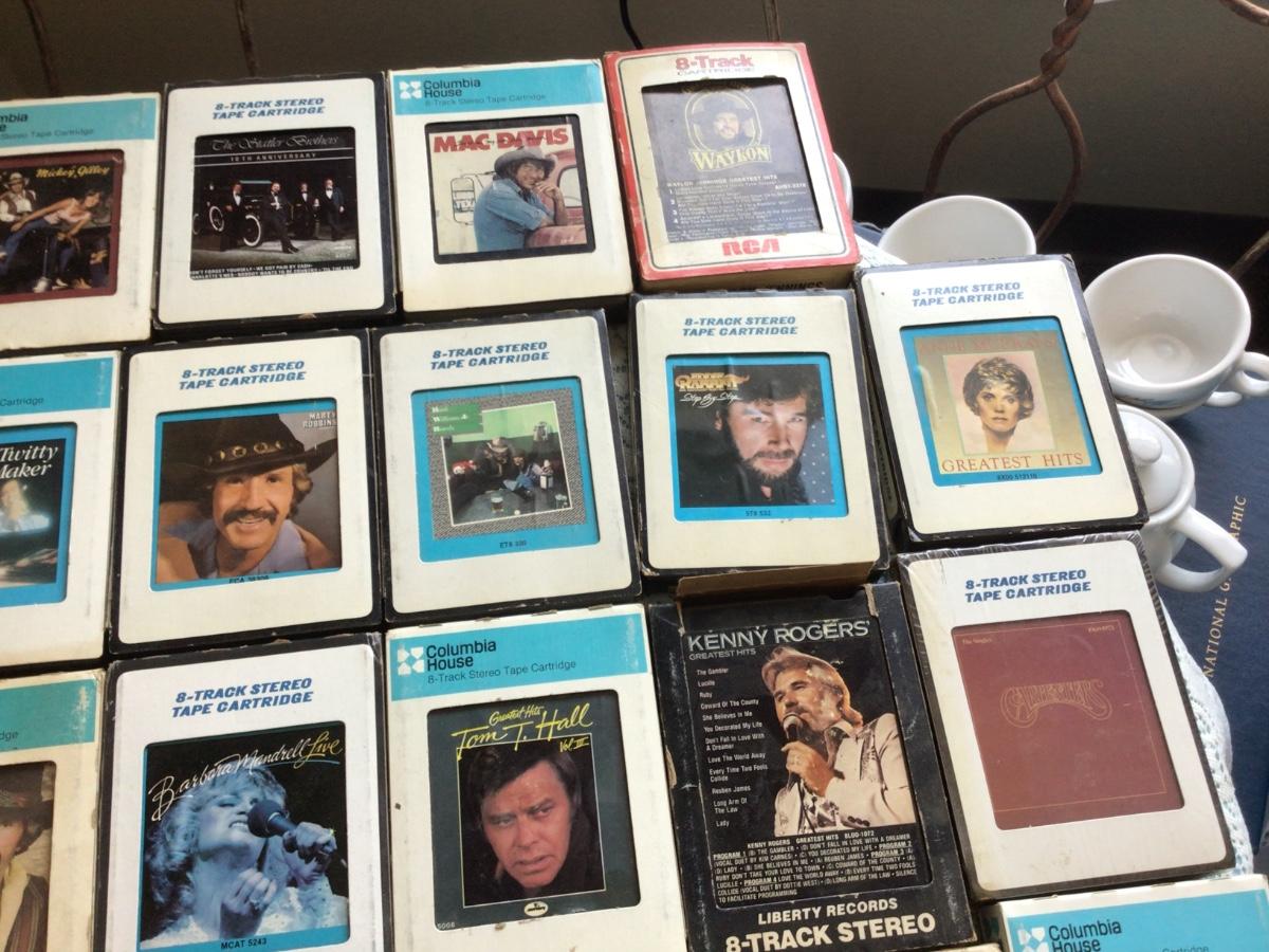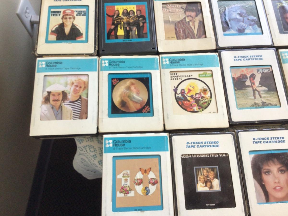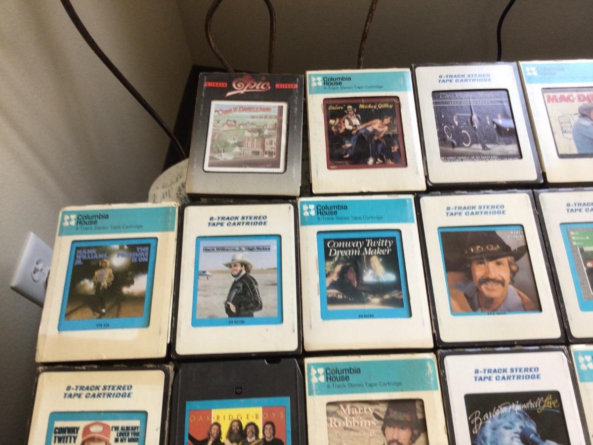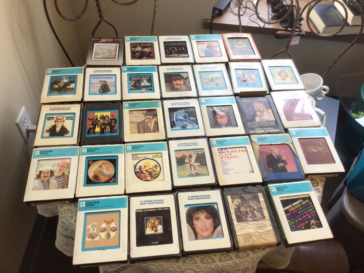 You get a great lot of 8-track tapes. There are 31 total 12 Rock and Roll and 29 Country. Not tested.