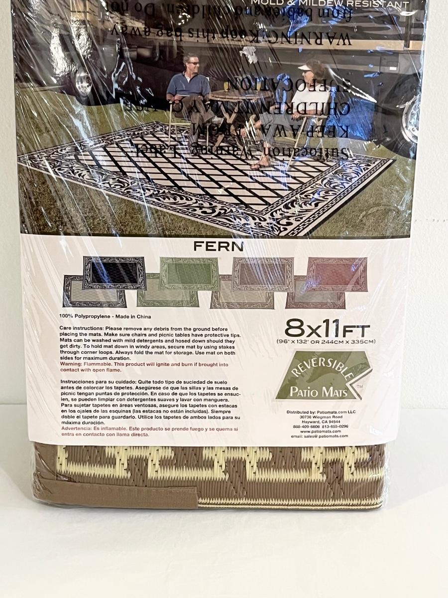 PATIOMATS ~ 8x 11 Indoor/Outdoor Khaki Reversible Patio Mat ~ New