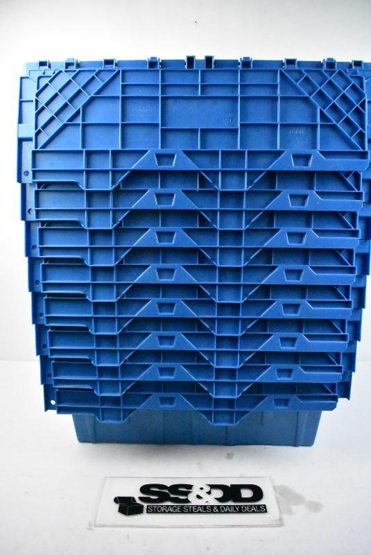 8x Blue Totes with Crossover Flaps Lids and Spot for a Lock