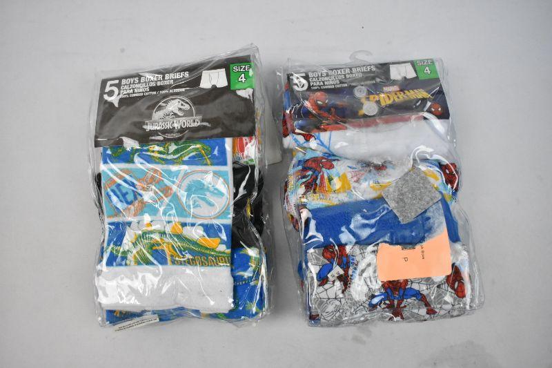 8x Boys Underwear Boxer Briefs Size 4: Spiderman & Jurassic World - New, Open