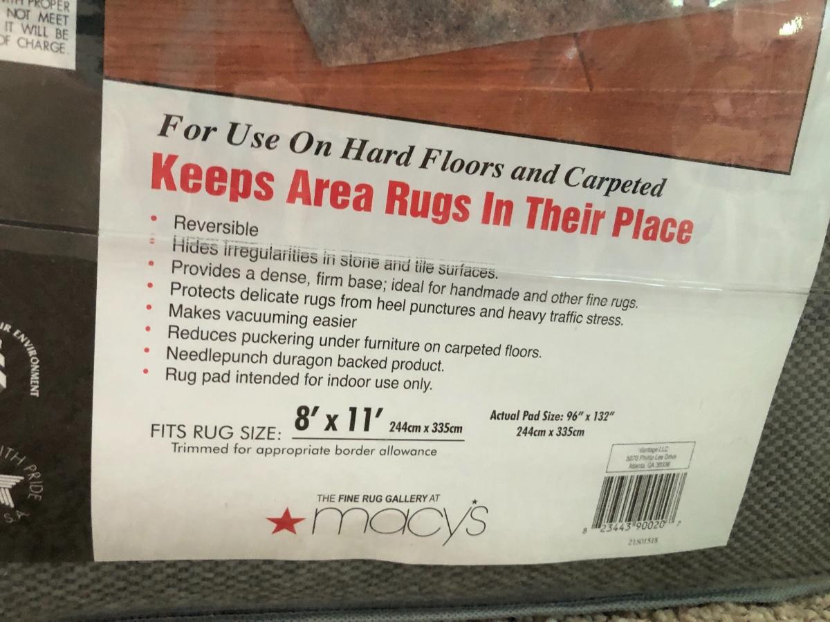 8’x11’ Macy’s Super Movenot Non Slip Rug Cushion -Lot 309