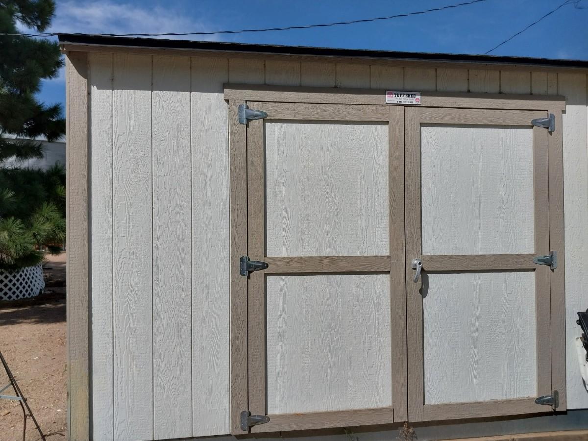 8X12 DOUBLE DOORS A VERY NICE SHED! YES YOU WILL HAVE TO DO THE UN-ASSEMBLEOR IF HAVE THE MEANS TO MOVE ASSEMBELED THIS IS LIKE THE ONES THAT RETAIL FOR IN THE THOUSANDS.