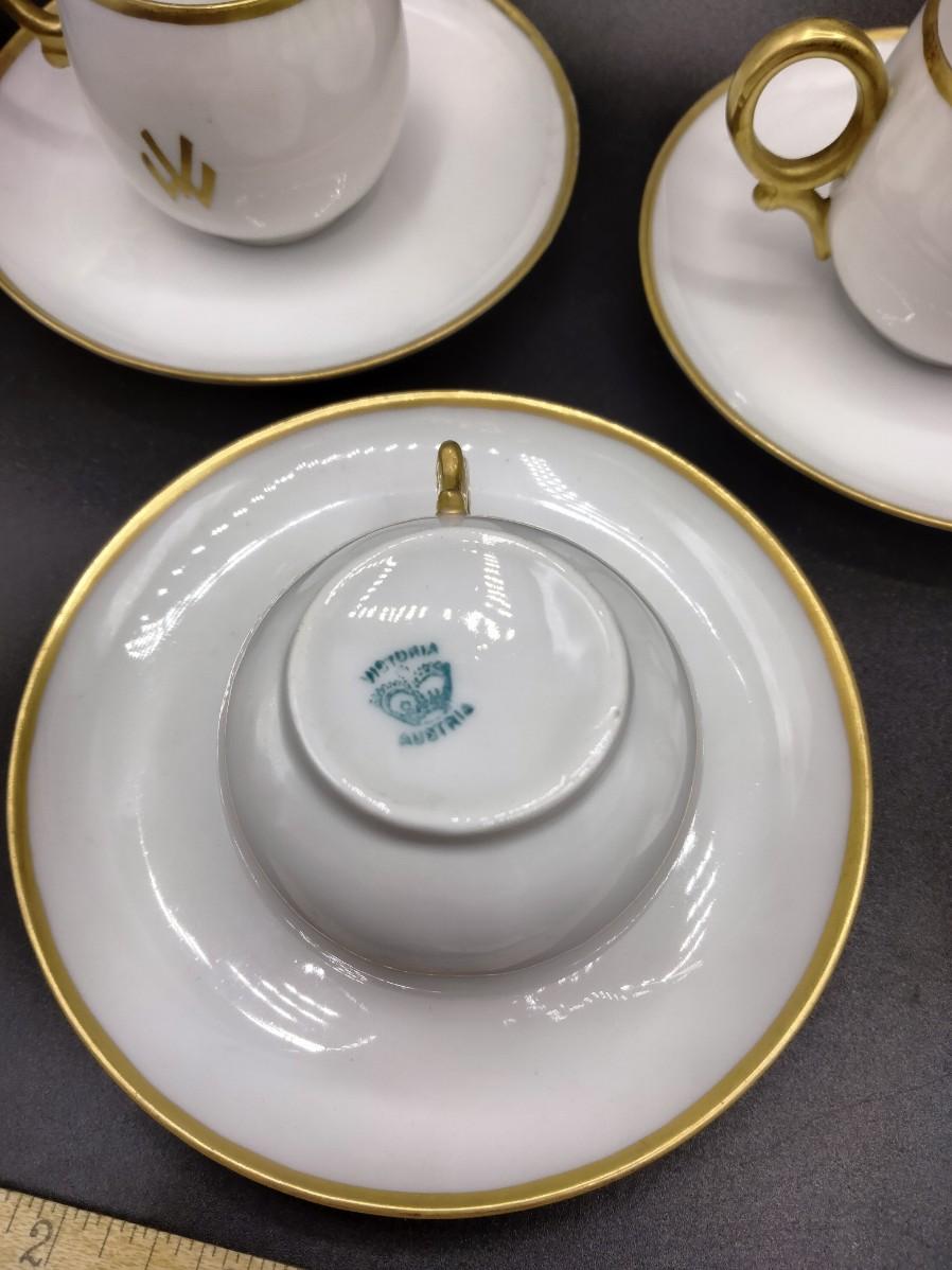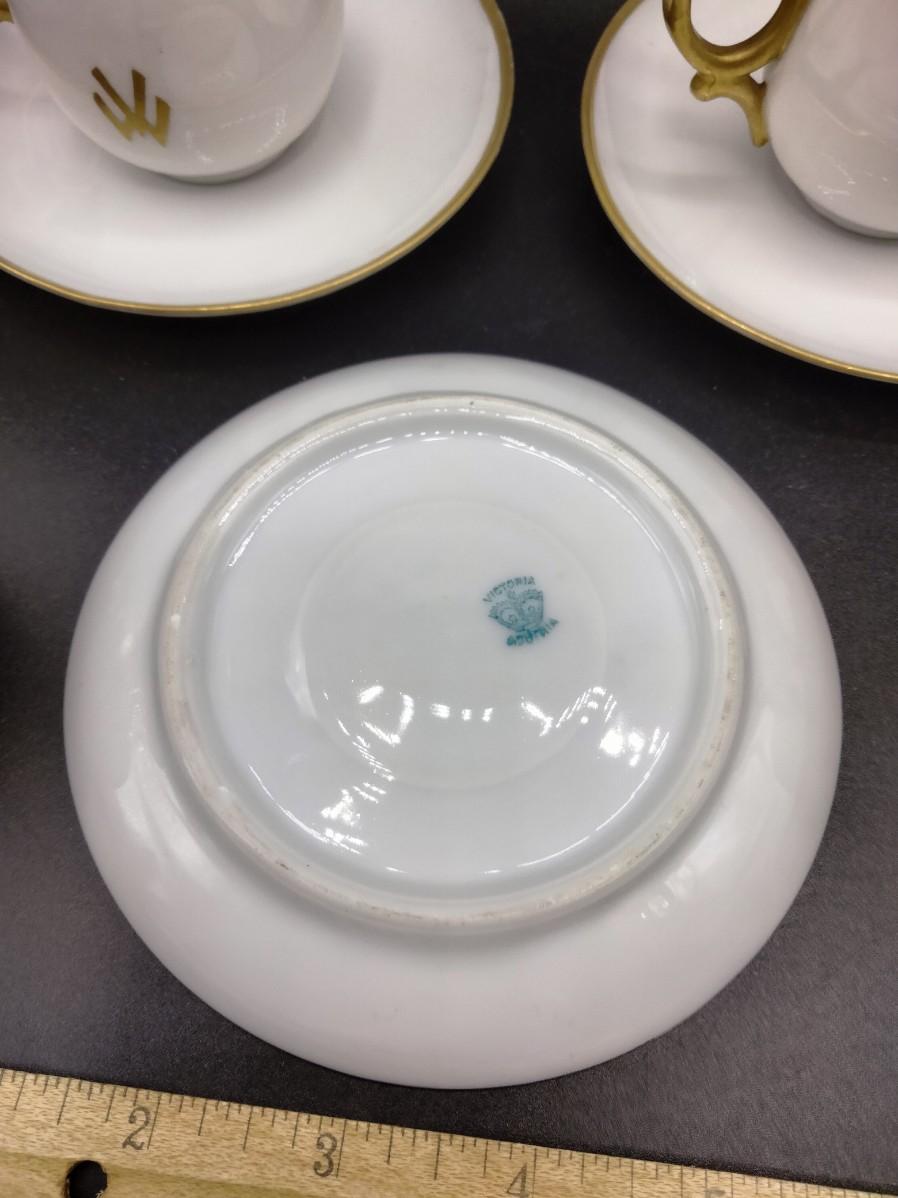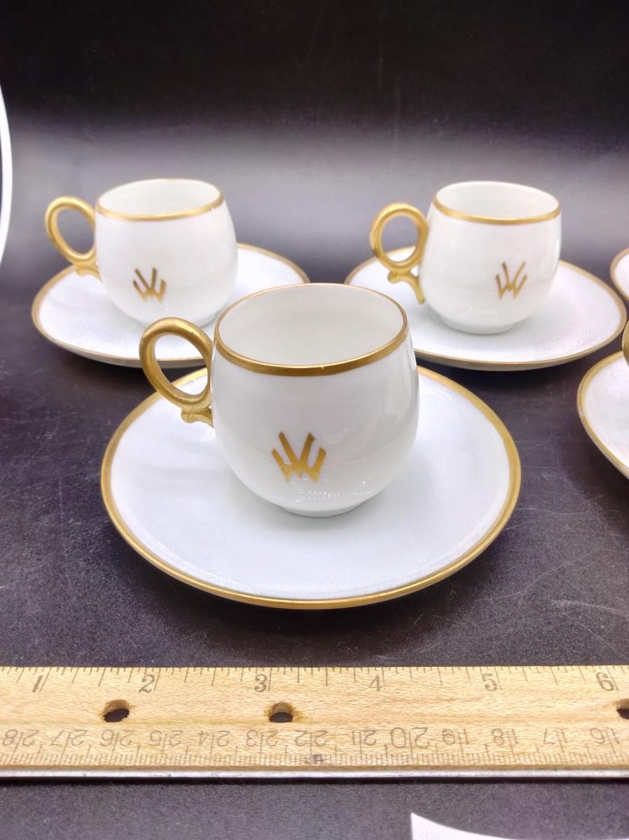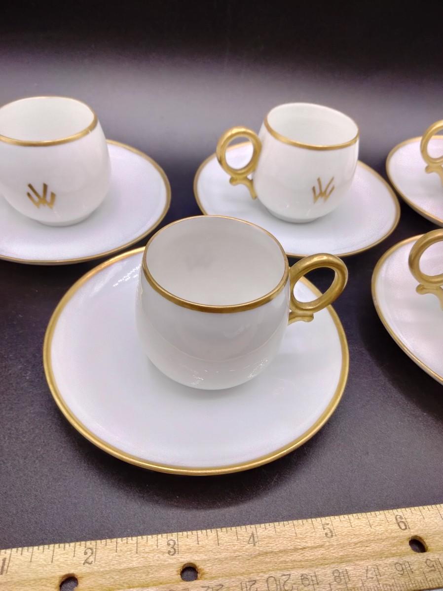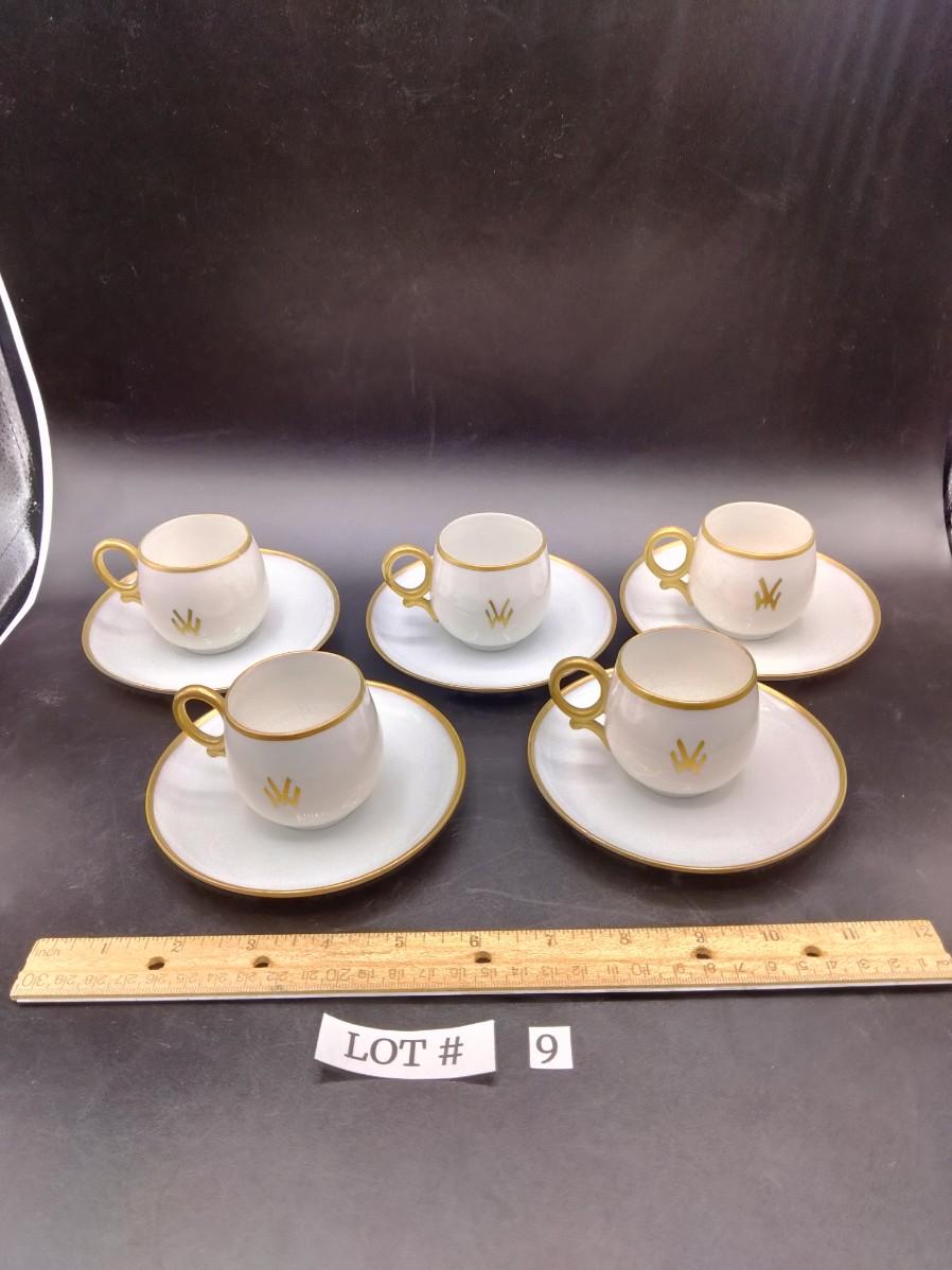 monogrammed and rimmed in gold. 5 saucers and 5 cups