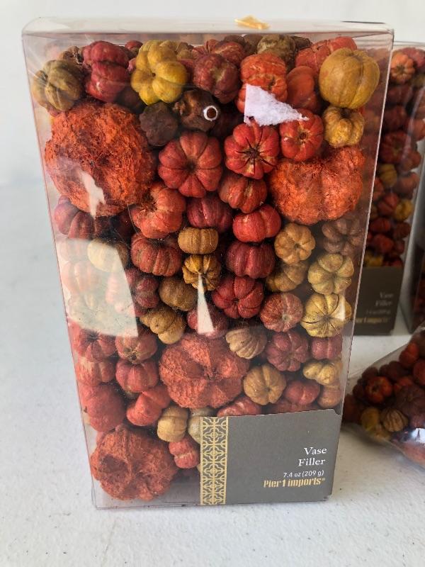Four unopened boxes of autumn vase filler pumpkins one opened and re-bagged. This is an ONSITE Auction all items will need to be picked up on location. Please see auction description for pick up procedures.