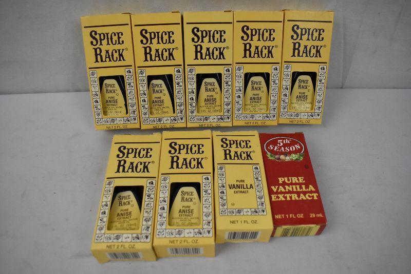 9 Bottles Flavoring Extract: 7 Anise & 2 Vanilla. Unknown age. SEALED