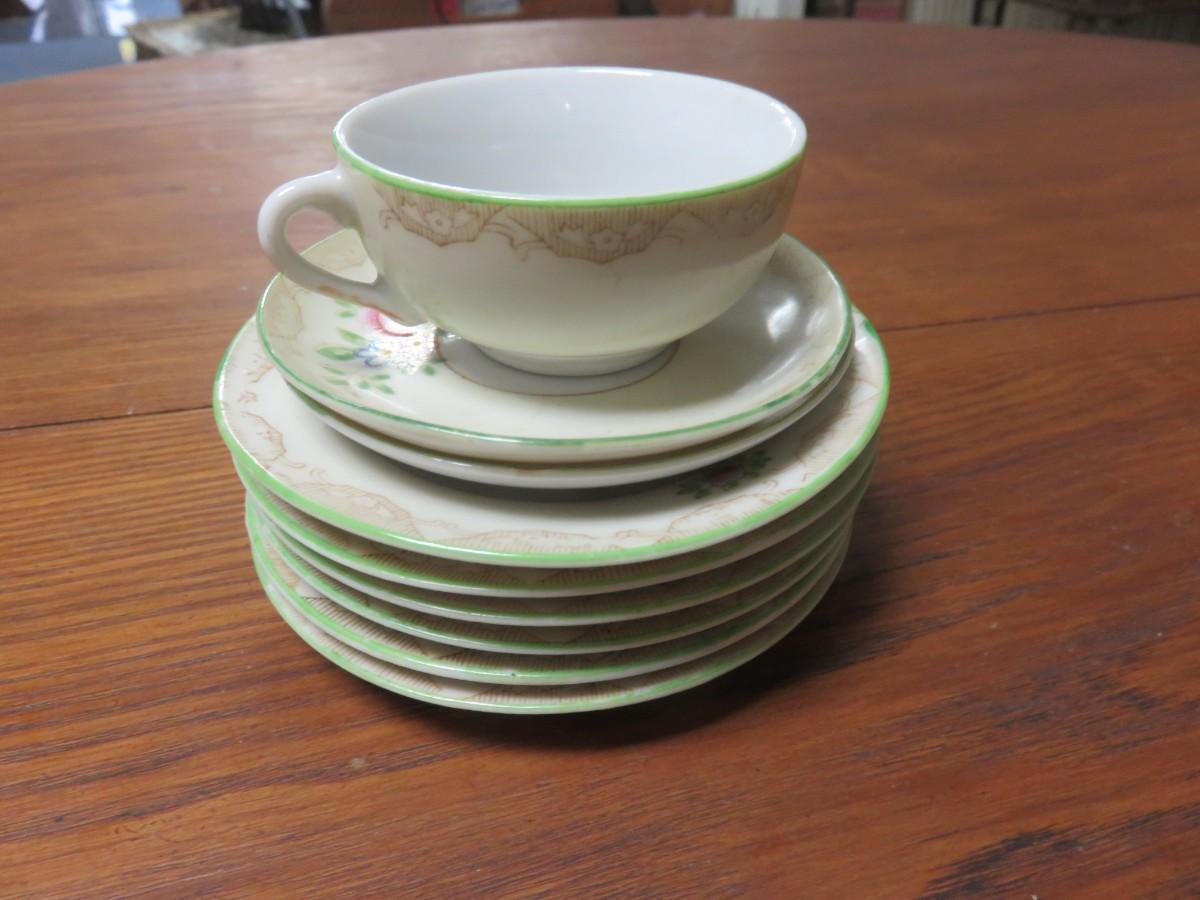 9 Children's Dishes - 1 marked Occupied Japan - All about 4 inches across