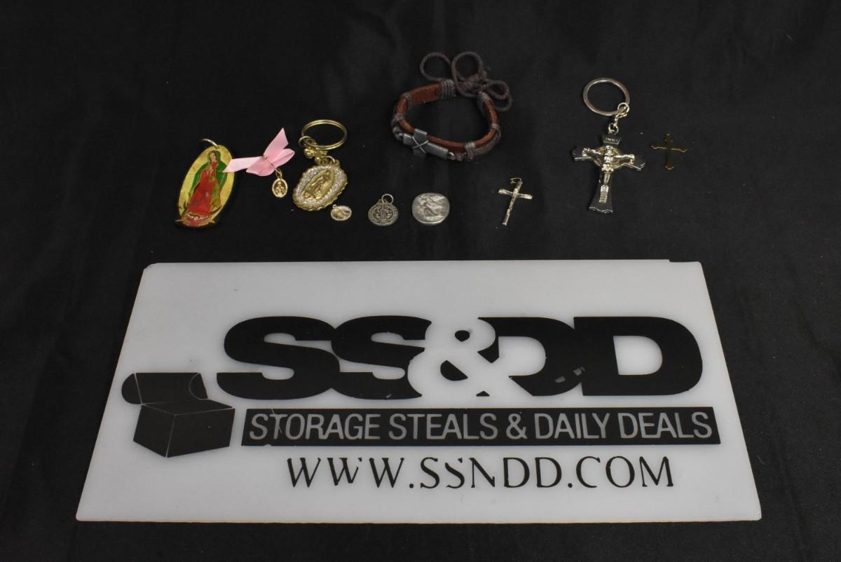 9 Christian Religions Pieces, Mother Mary Pendants and Crucifix. Costume Jewelry