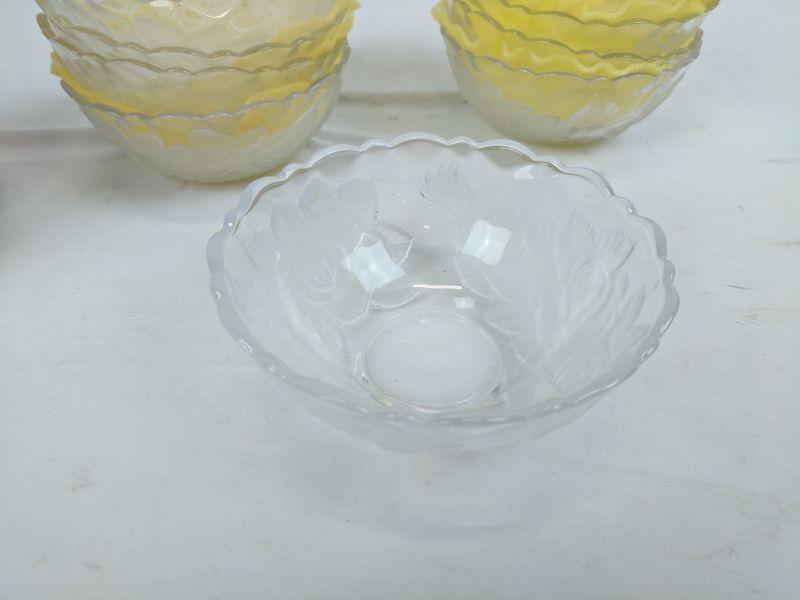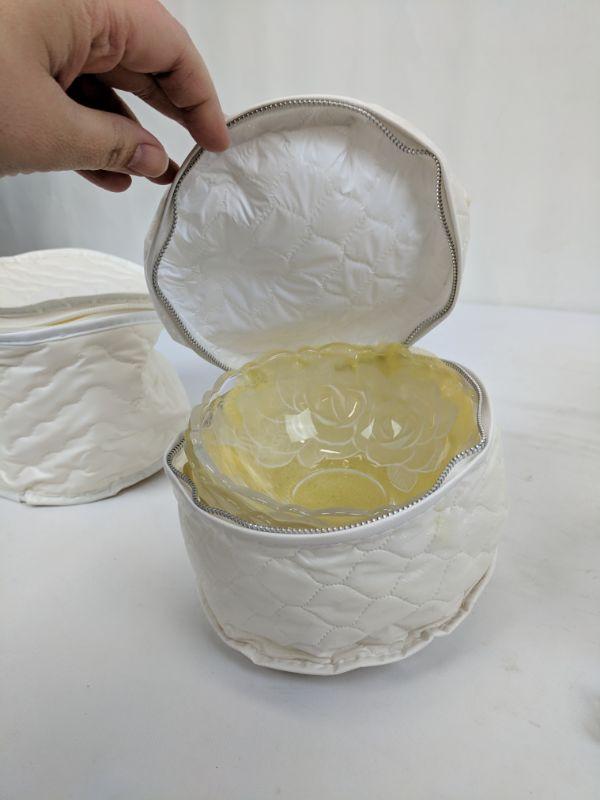 9 Clear Crystal Dessert Bowl with Roses, 2 Containers/Storage to Hold Bowls
